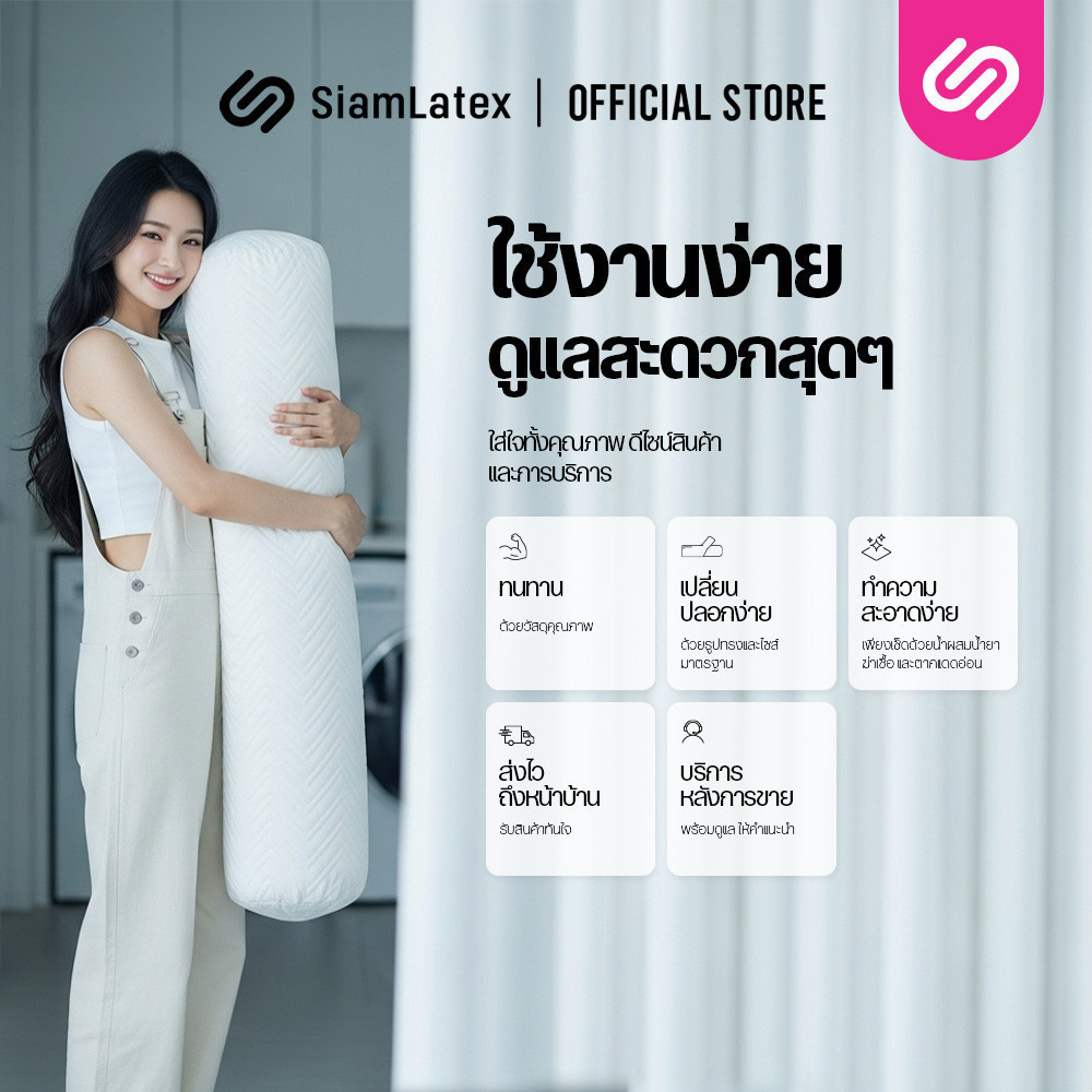 SiamLatex Micro Bolster หมอนข้างยางพารา เนื้อแน่น เด้ง ยางปั่นอัดแน่นพิเศษ อายุการใช้งาน 10 ปี