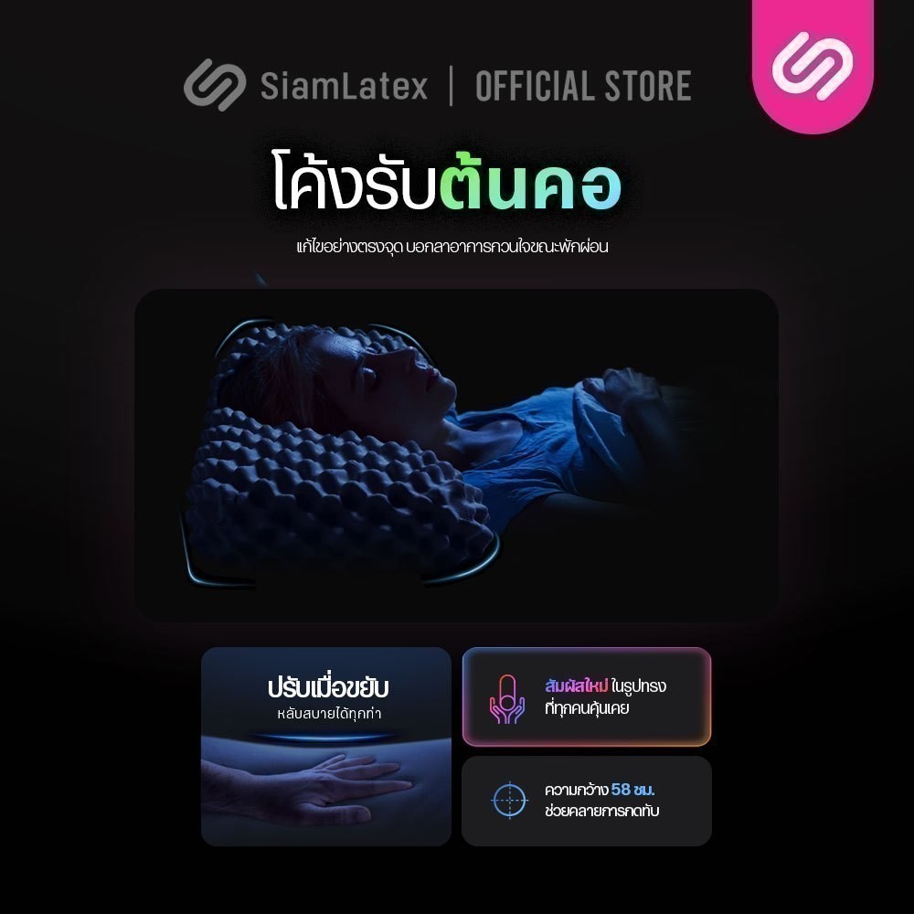 SiamLatex Durian Black Charcoal หมอนยางพารา ผสมถ่านไม้ไผ่ หมอนเพื่อสุขภาพ แก้ปวดคอ ลดอาการกรน