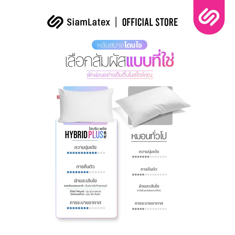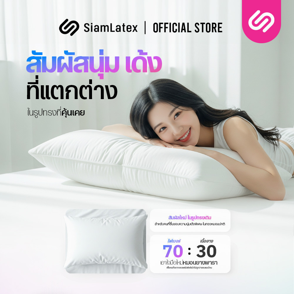 [ซื้อ 1 แถม 1] SiamLatex Hybrid Plus หมอนยางพาราไฮบริด ผสมผสาน ใยหมอนไฟเบอร์ และ น้ำยางพารา