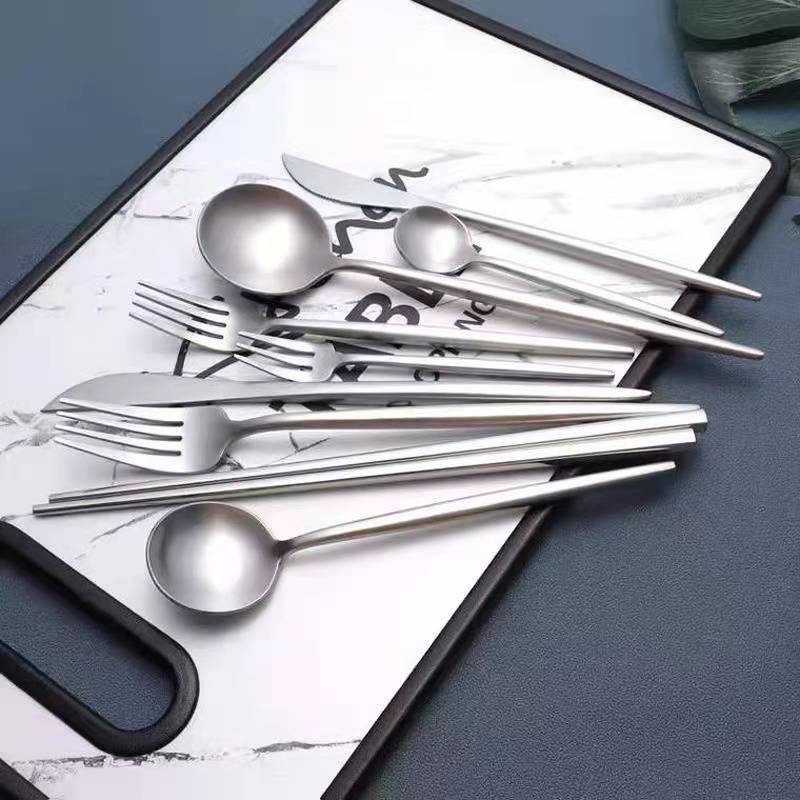 ช้อน ส้อม ช้อนส้อม ช้อนเกาหลี ส้อมเกาหลี ชุดช้อนเกาหลี ชุดช้อนส้อม ขนาด21ซม สแตนเลสแท้ (076)