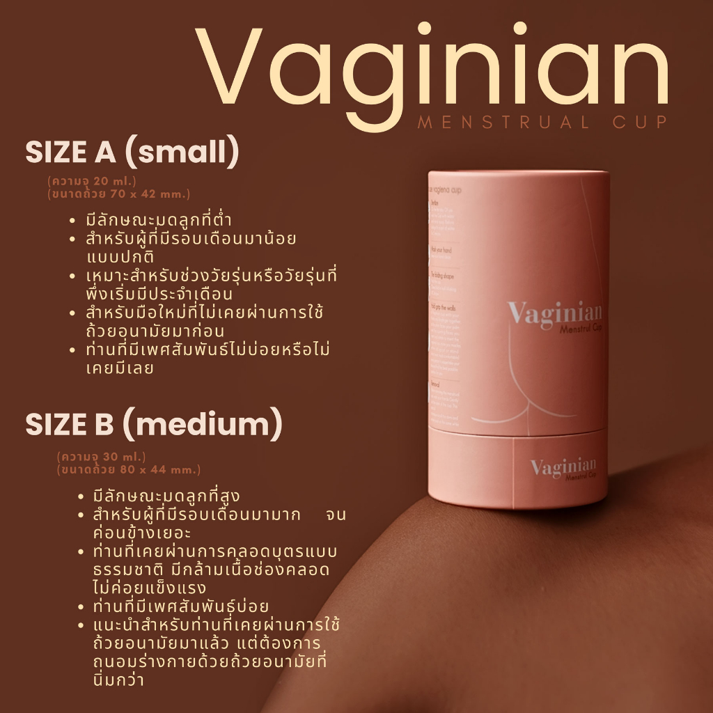 ถ้วยอนามัยVaginian สำหรับผู้ที่ไม่เคยใช้ถ้วย1 อนามัยมาก่อน (รับประกัน 1ปี)
