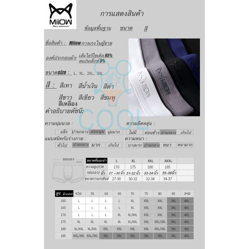 🚛พร้อมส่งไทย🚛 Miiow🔥กางเกงในผู้ชาย ❄️ผ้าเย็นต้านเเชื้อแบคทีเรีย🦠AAA🔥 🔥 Men's Underwear#022