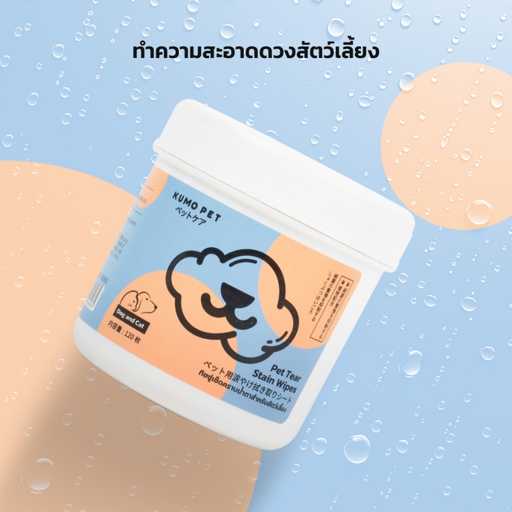 KUMOO PET แผ่นเช็ดคราบน้ำตาสุนัขและแมว ทิชชู่เปียกเช็ดคราบน้ำตา บรรจุ120แผ่น