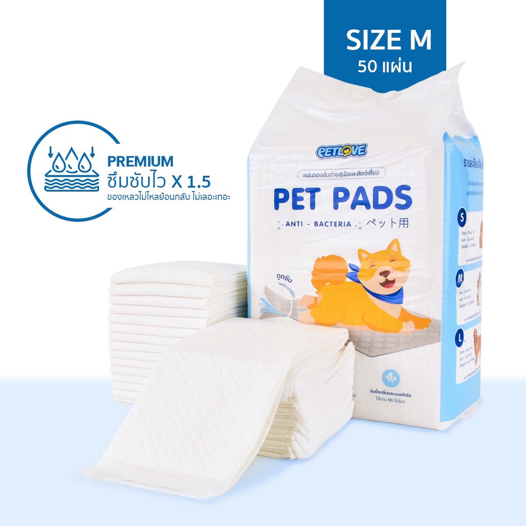 PETLOVE แผ่นรองฉี่ แผ่นรองฉี่สุนัข แผ่นรองฉี่แมว ไม่มีกาวแปะ ช่วยฝึกขับถ่าย ซึมซับได้ดี กักเก็บกลิ่น