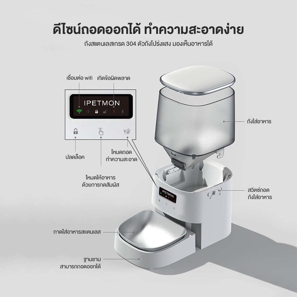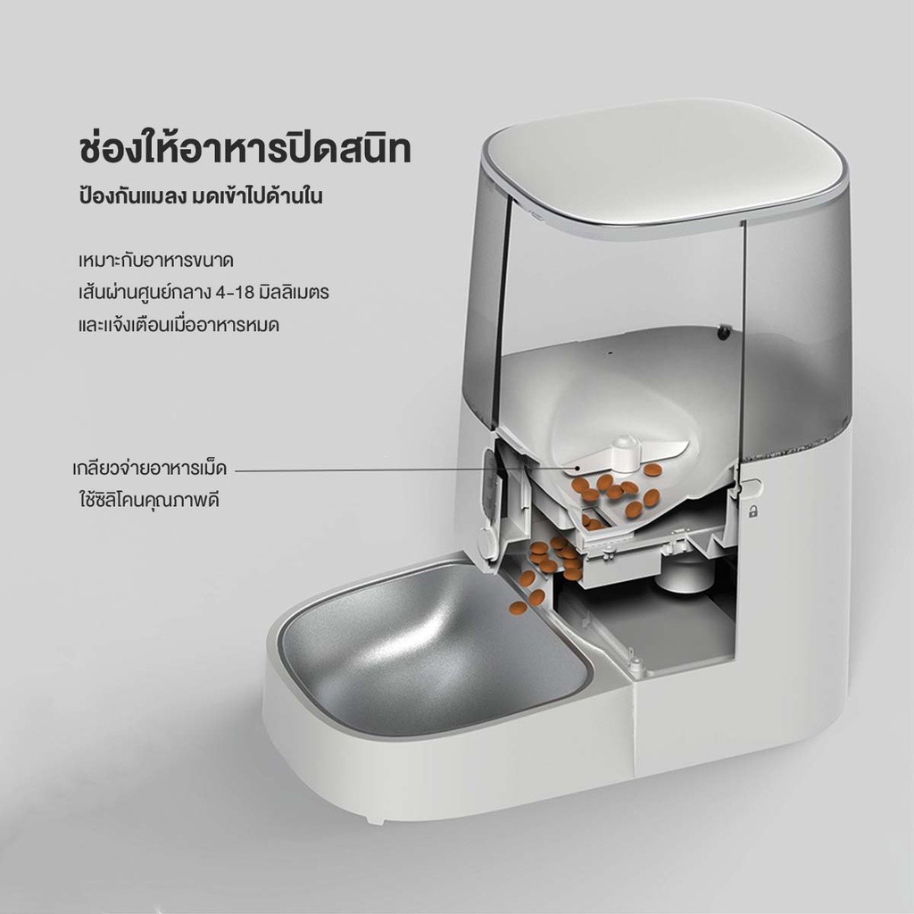 Petlove เครื่องให้อาหารสัตว์อัตโนมัติ 4.8 ลิตร ชามถอดล้างได้ มีช่องเก็บสารกันความชื้น สีขาว