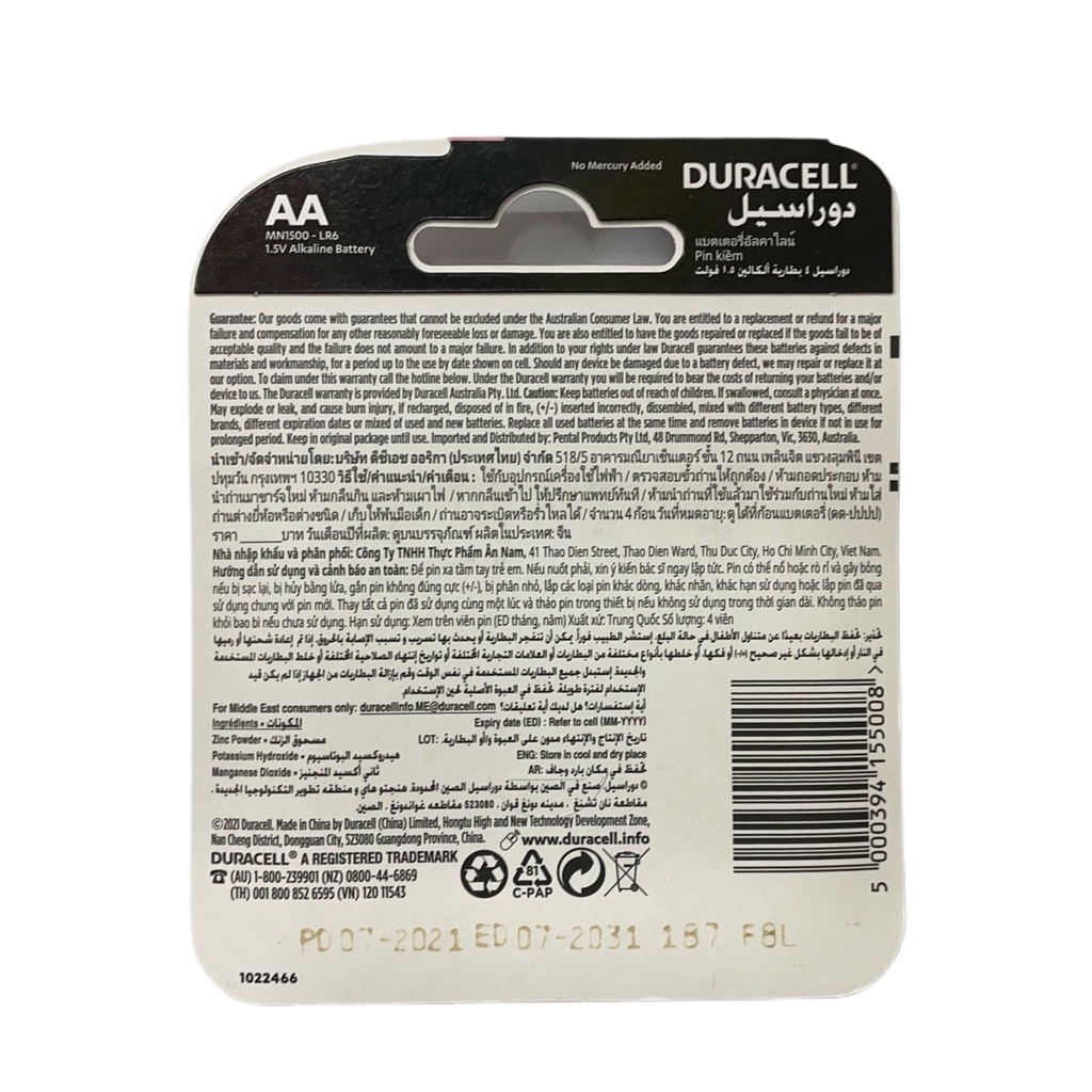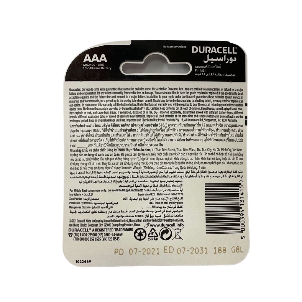 ถ่าน Duracell Everyday Alkaline 1.5V แพค 4 ก้อน AAA และ AA ของใหม่ ของแท้