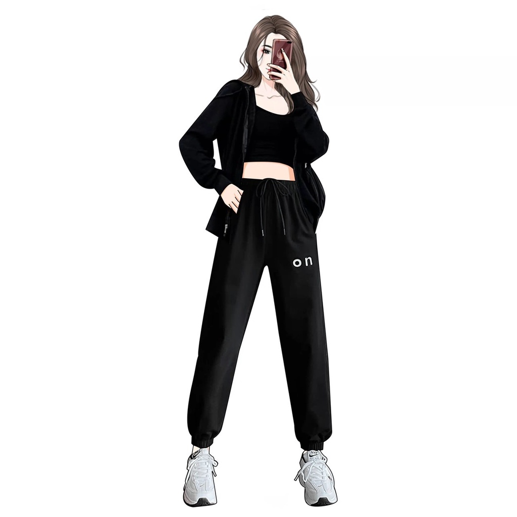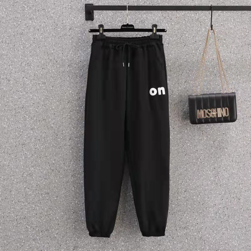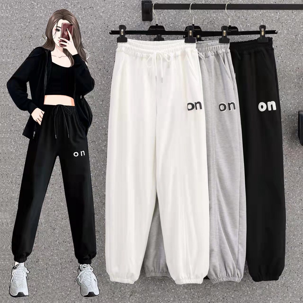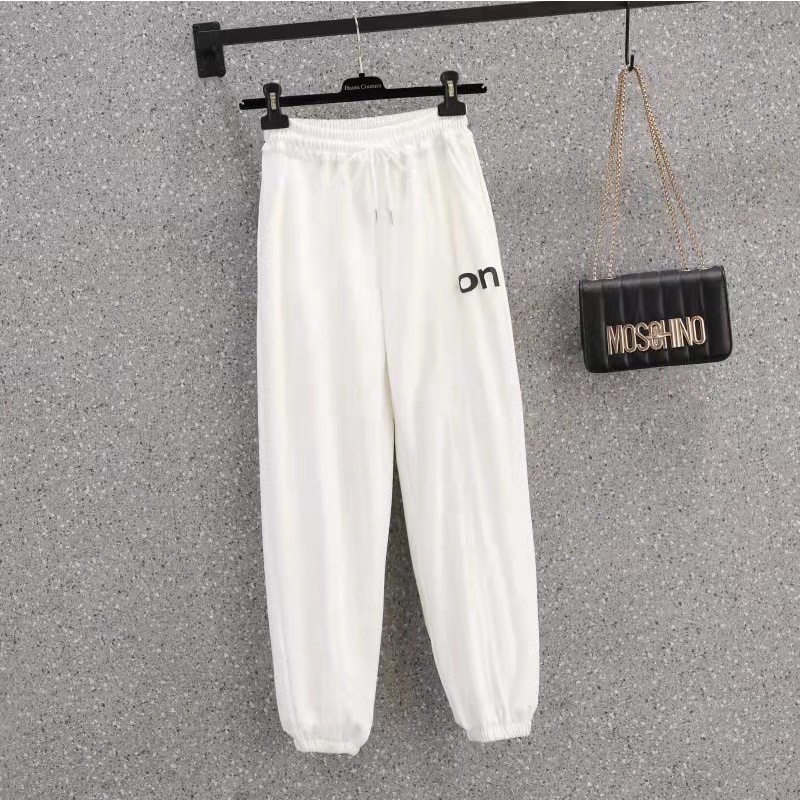 พร้อมส่ง กางเกงกีฬาขาจั๊มสไตส์ยุโรป กางเกงฮาเร็มเอวสูงทรงหลวม