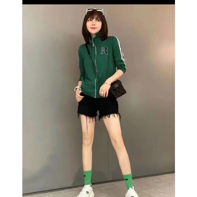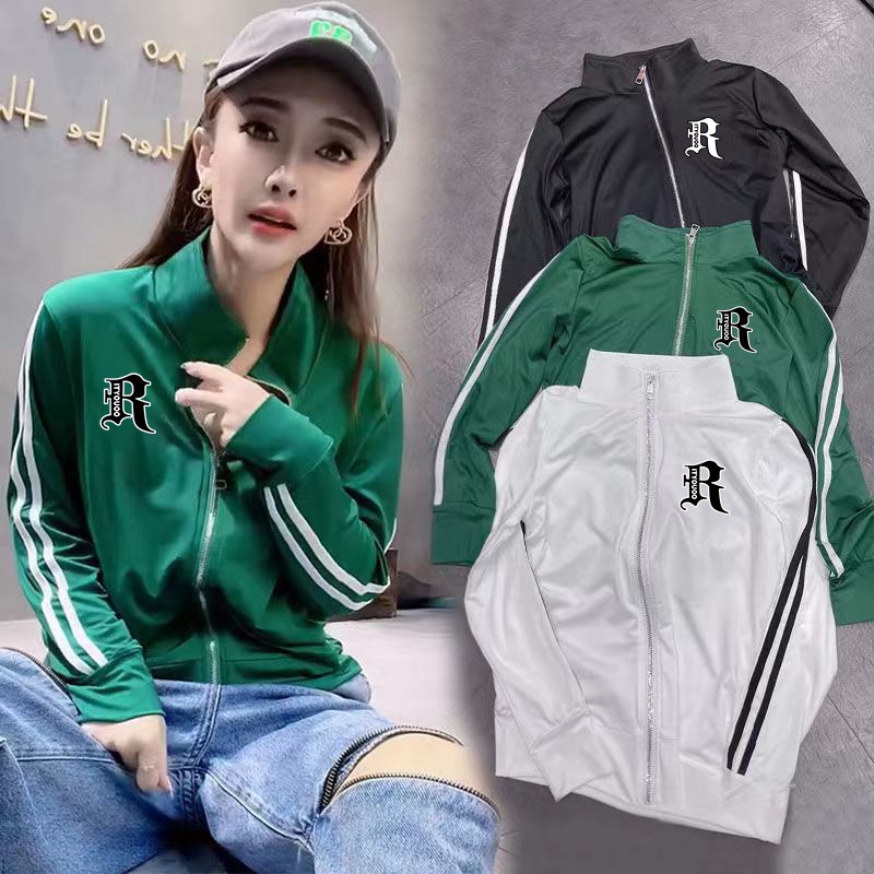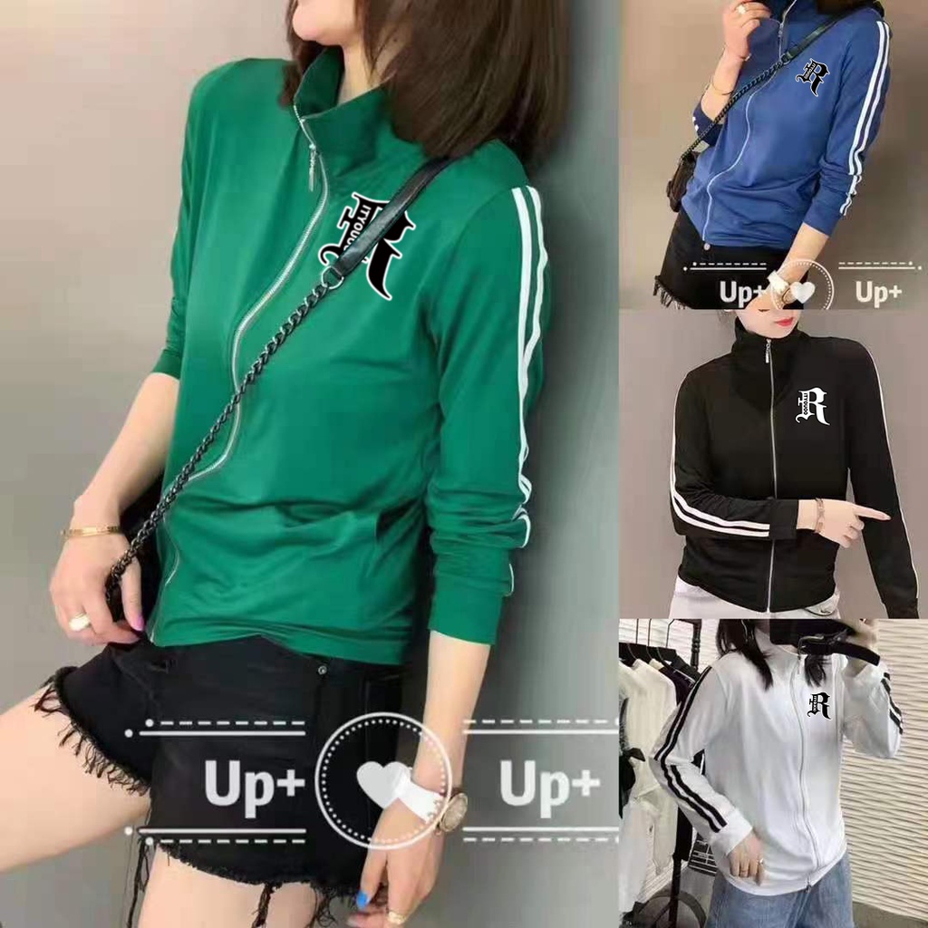 เสื้อแจ็คแก็ตกันหนาวแขนยาวพิมพ์ลายRที่อก เสื้อซิปแขนยาว เสื้อคลุมแขนยาว