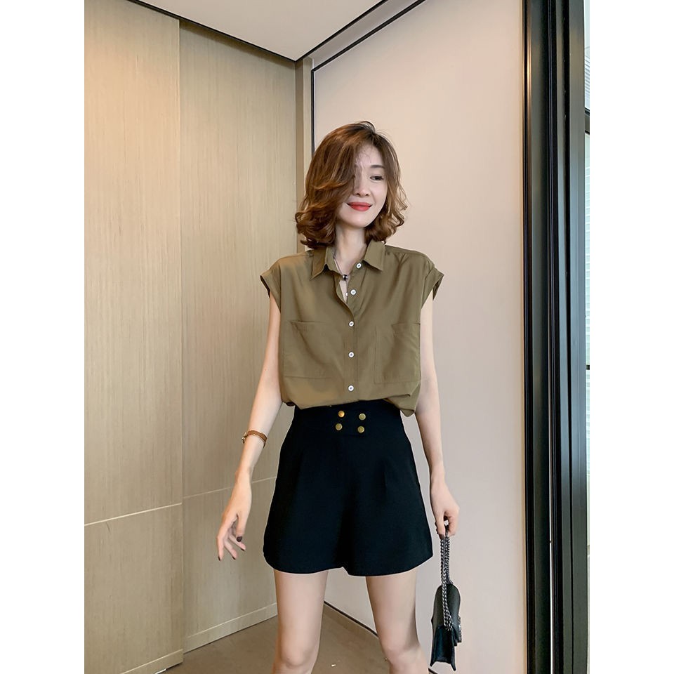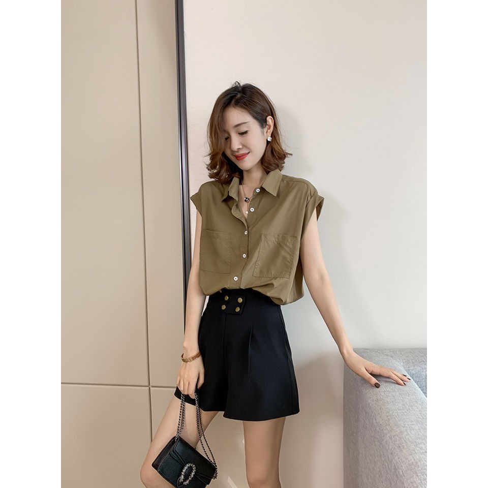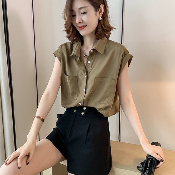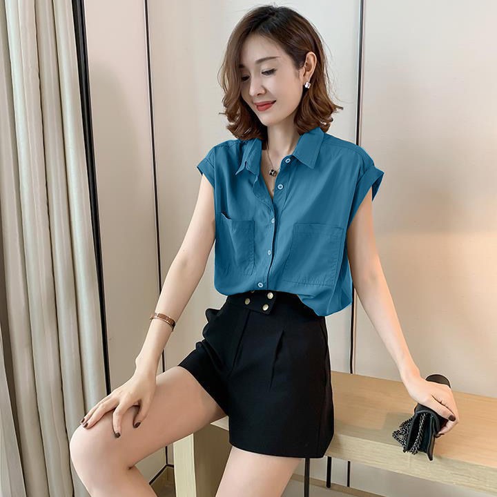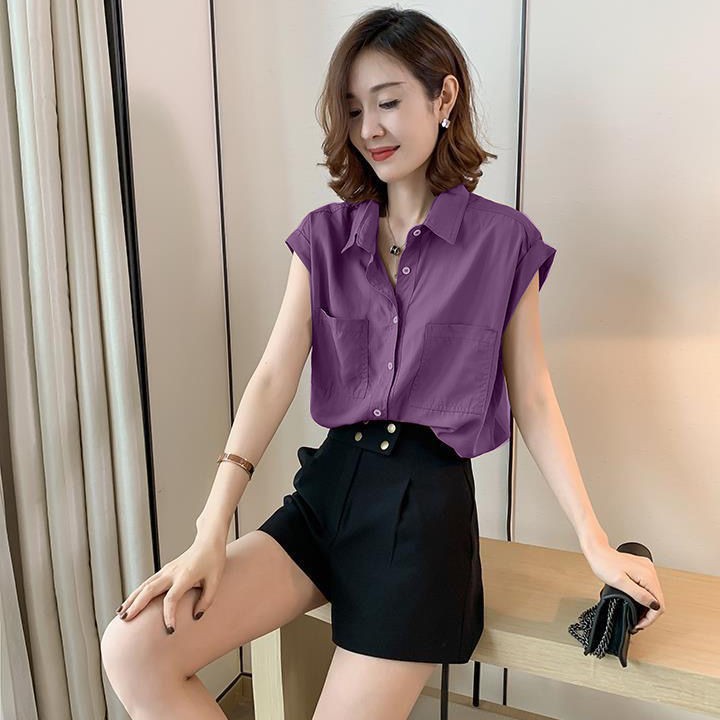 *พร้อมส่ง**เสื้อเชิ้ตแขนสั้นสไตล์มินิมอลดีไซส์แก๋มีกระเป็าหน้า เสื้อผ้าแฟชั่นสไตล์เกาหลี เสื้อเชิ้ตทำงานไซส์ใหญ่