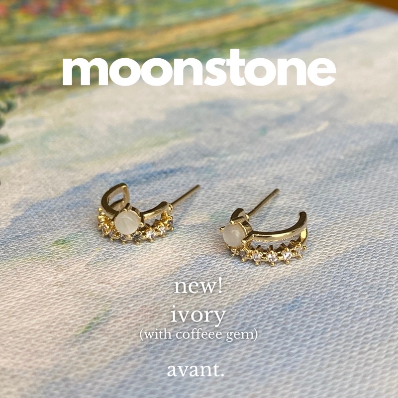 Avantgarde.bkk 🌝🌚 Restock! Moonstone stud ต่างหูครึ่งวง 8-9 mm ก้านเงิน s925 น่ารักม้ากกก
