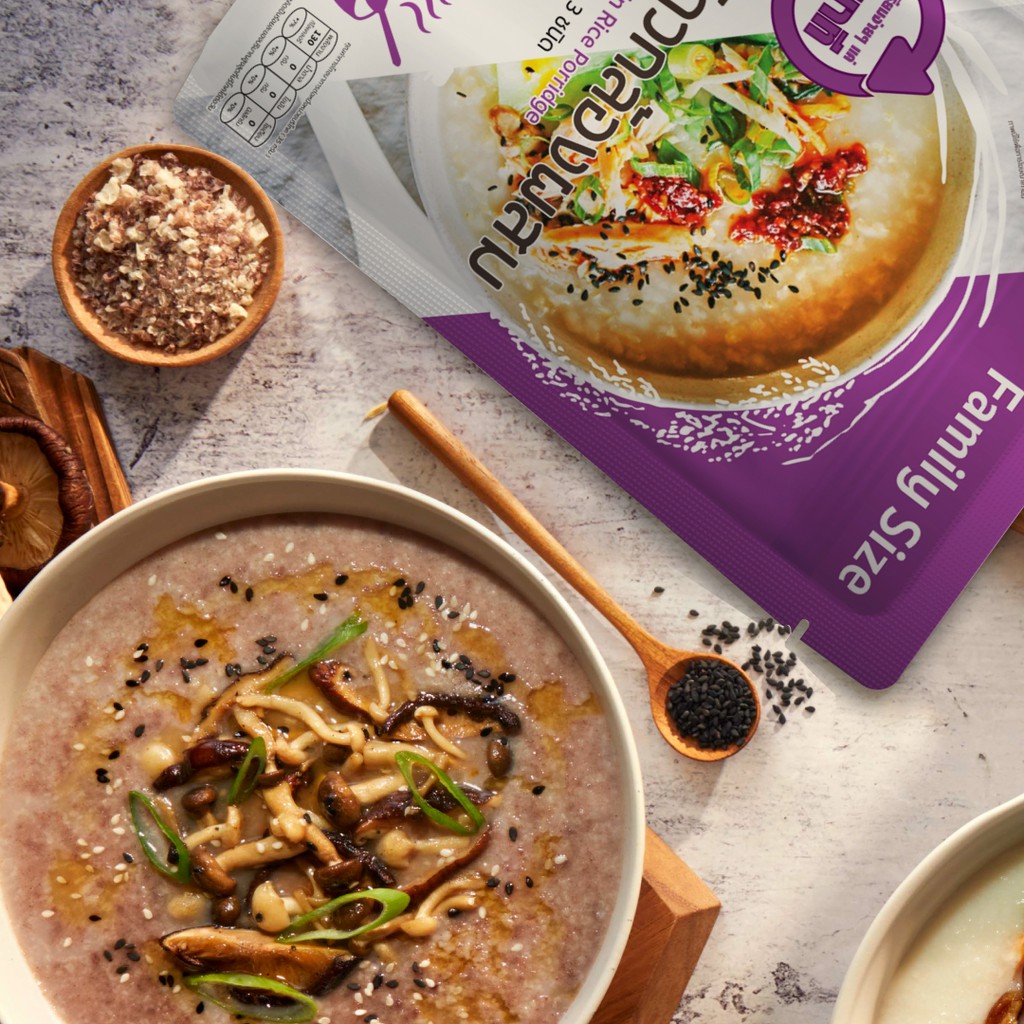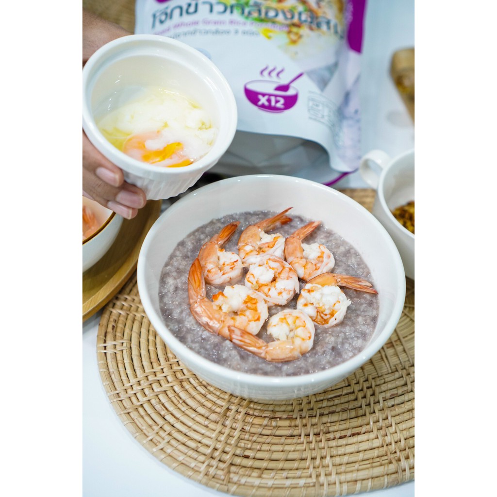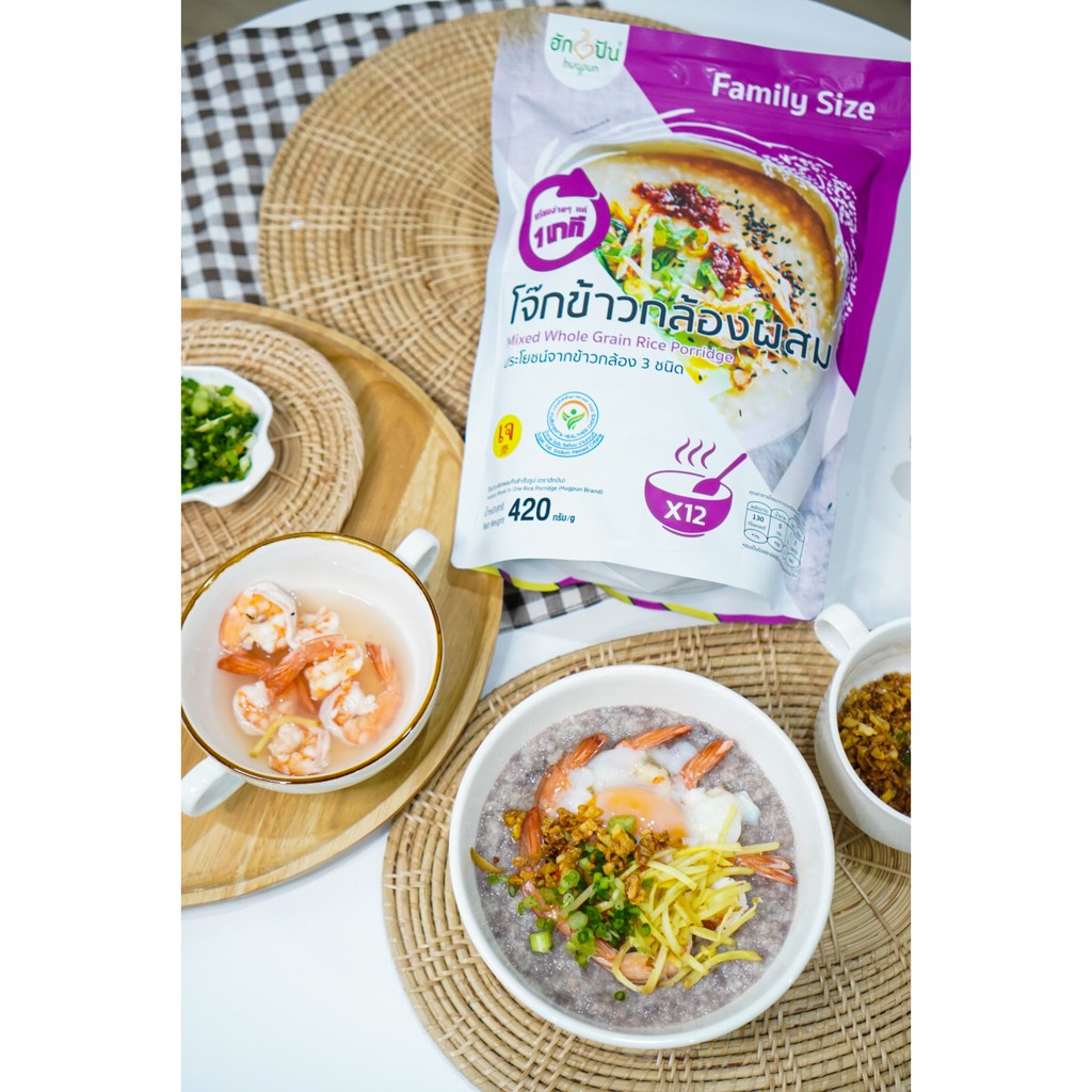 โจ๊กข้าวกล้องผสม 3ชนิด ข้าวกล้องหอมมะลิ ข้าวกล้องไรซ์เบอร์รี่ ข้าวกล้องหอมแดง บรรจุ 420ก.