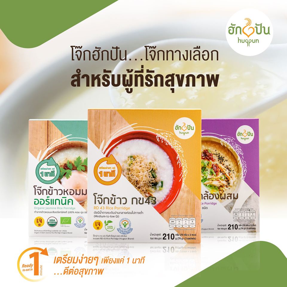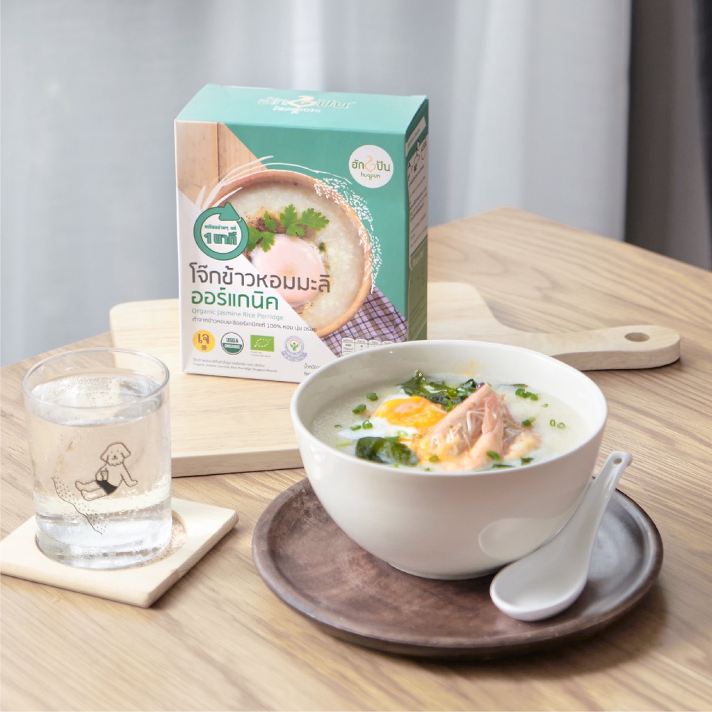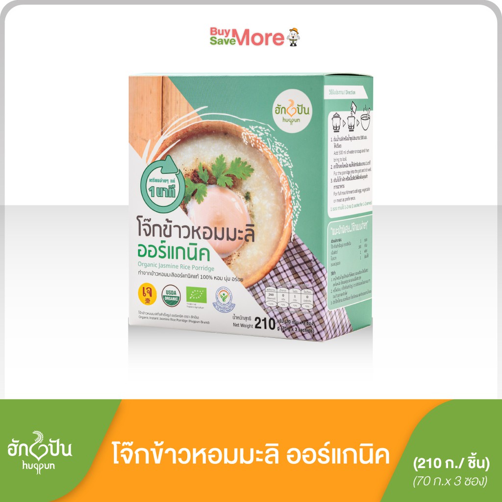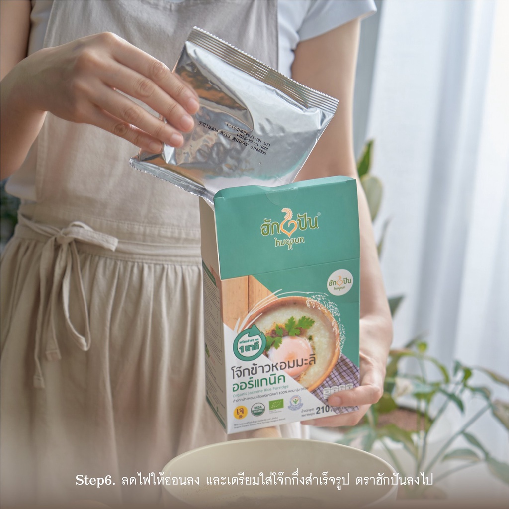 โจ๊กข้าวหอมมะลิ ออร์แกนิค กึ่งสำเร็จรูป ไม่ใส่ผงชูรส ไม่มีโซเดียม บรรจุ 210 กรัม ฮักปัน