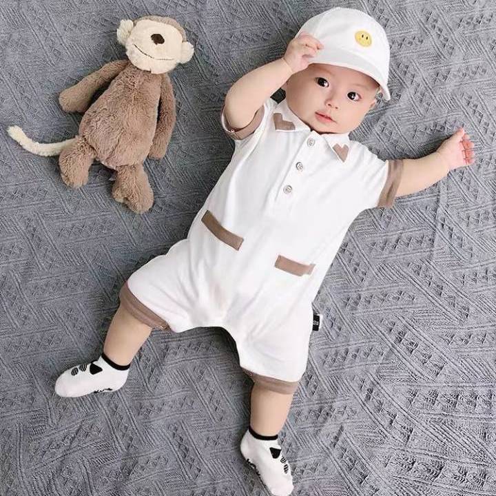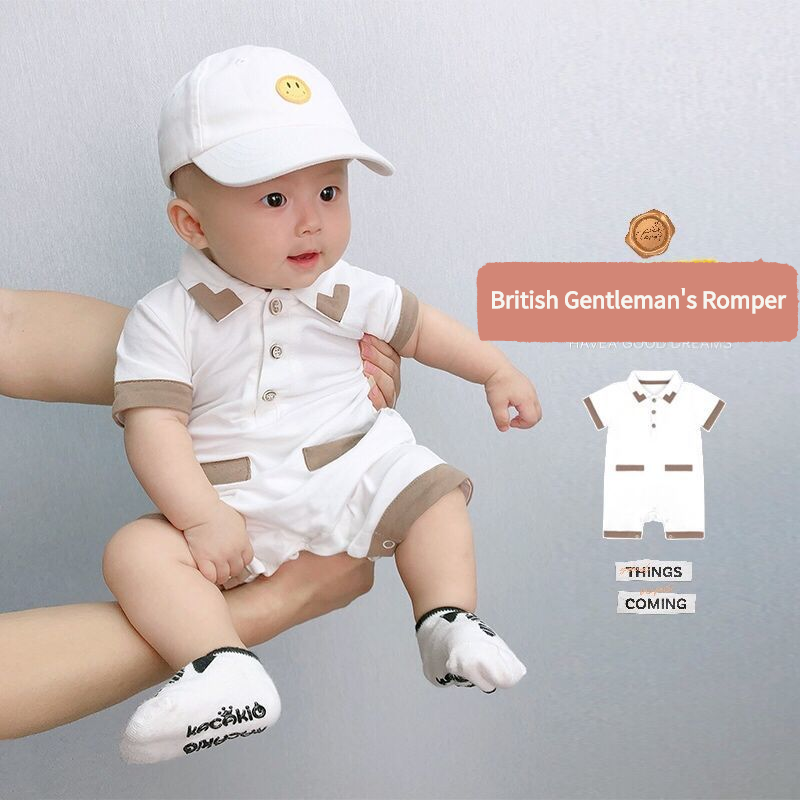 [พร้อมส่ง] ชุดจั๊มสูทรอมเปอร์ สไตล์อังกฤษ สําหรับเด็กทารกแรกเกิด 0-18 เดือน