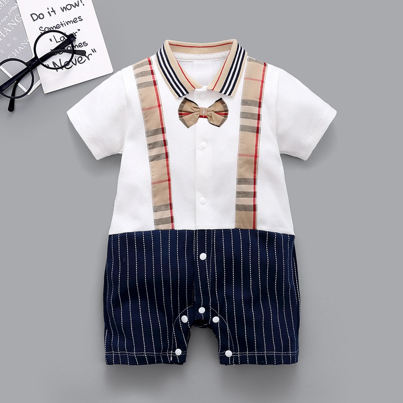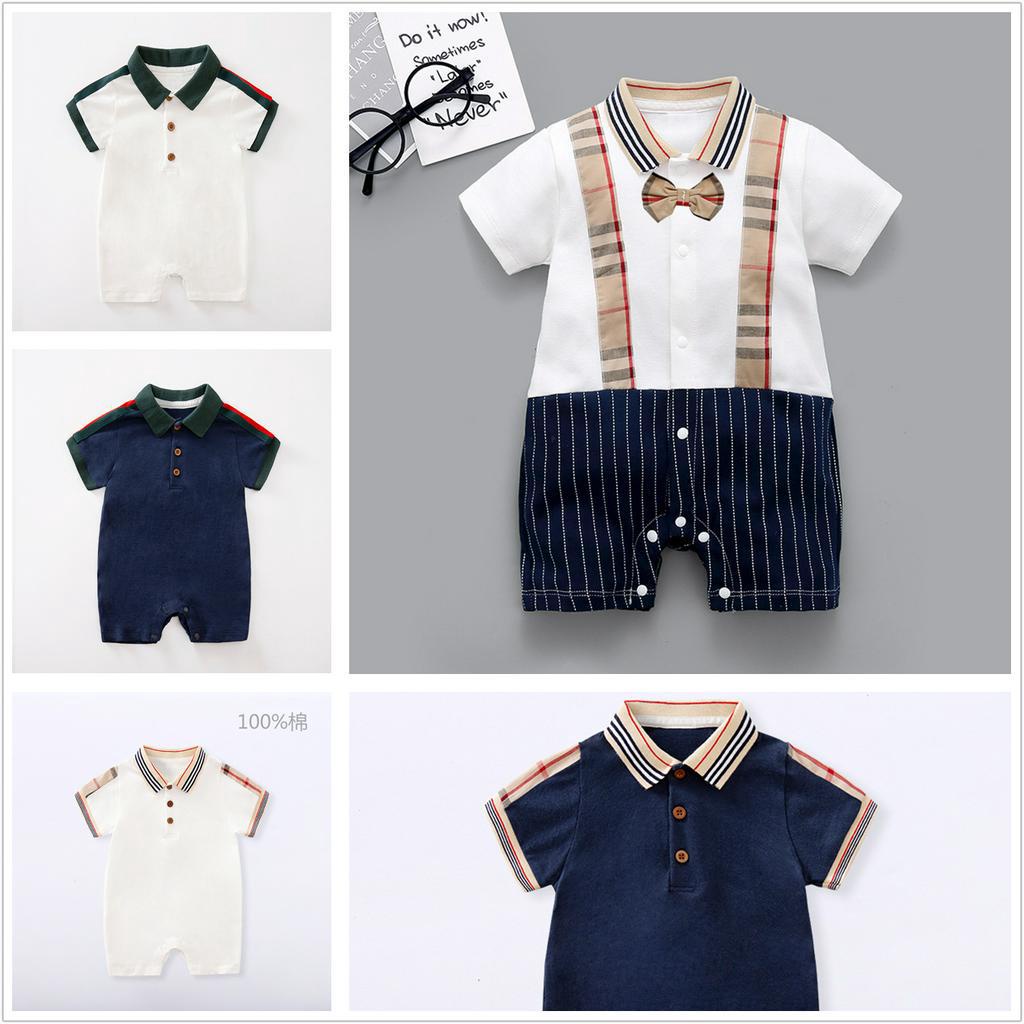 ชุดรอมเปอร์ จั้มสูท แขนสั้น เนื้อผ้าฝ้าย สไตล์ฤดูร้อน สําหรับเด็กทารก 0-24 เดือน