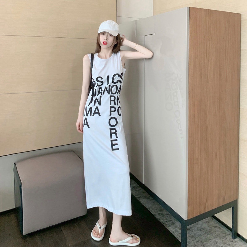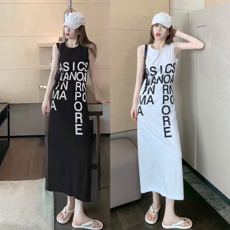 💛พร้อมส่ง💛เดรสยาวพิมพ์ลายตัวอักษรแฟชั่นเกาหลี M-3XL