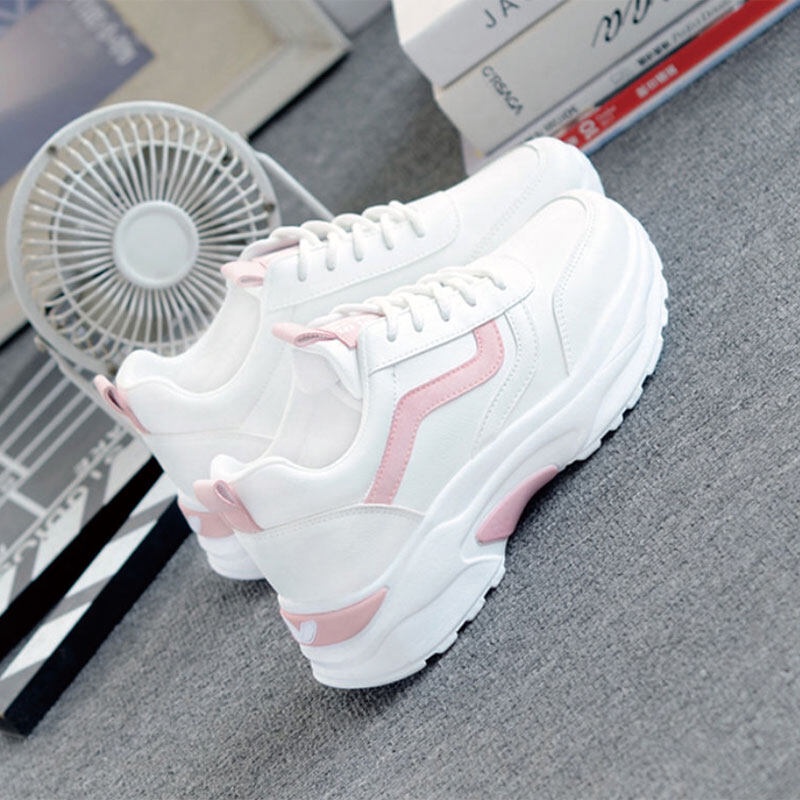 รองเท้าผ้าใบ รองเท้าวิ่ง แบบเรียบง่าย สำหรับผู้หญิง รองเท้ากีฬาเพิ่มส้นสูง4.5ซม ผู้หญิงสไตล์เกาหลี SD4232