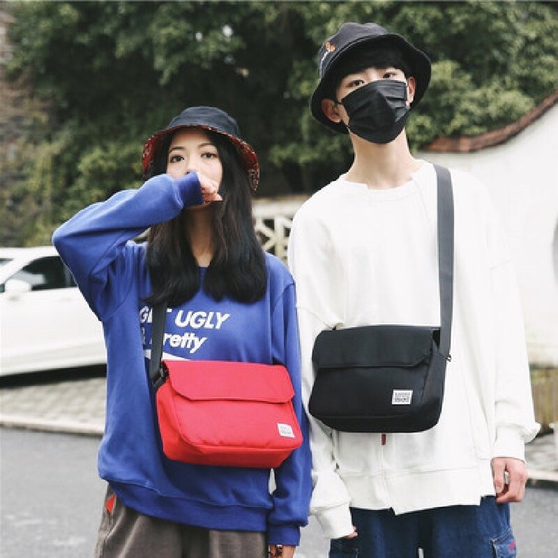 กระเป๋าสะพายข้าง กระเป๋าสะพายข้าง ผ้าแคนวาส สไตล์เกาหลี สำหรับผู้ชาย กระเป๋าผ้าสีดำ
