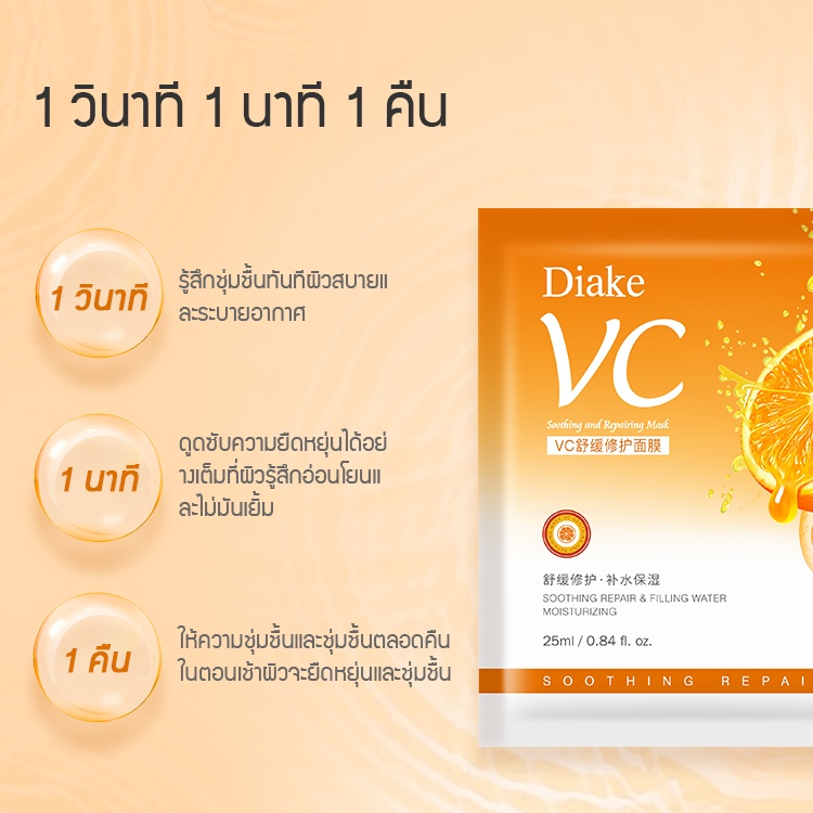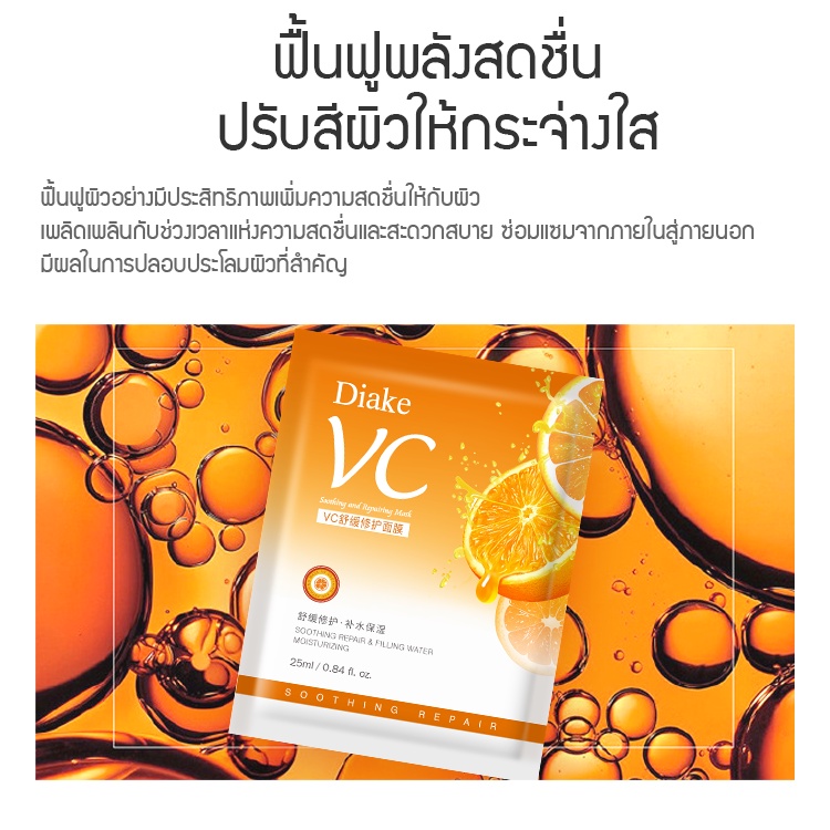 Diake แผ่นมาสก์หน้า สูตรวิตตามินซี เพื่อผิวสว่างกระจ่างใส เนียนนุ่ม ชุ่มชื้น ลดริ้วรอย VC แผ่นมาร์คหน้ายกกล่อง ครีมมาร์คหน้า ครีมพอกผิว SC6039