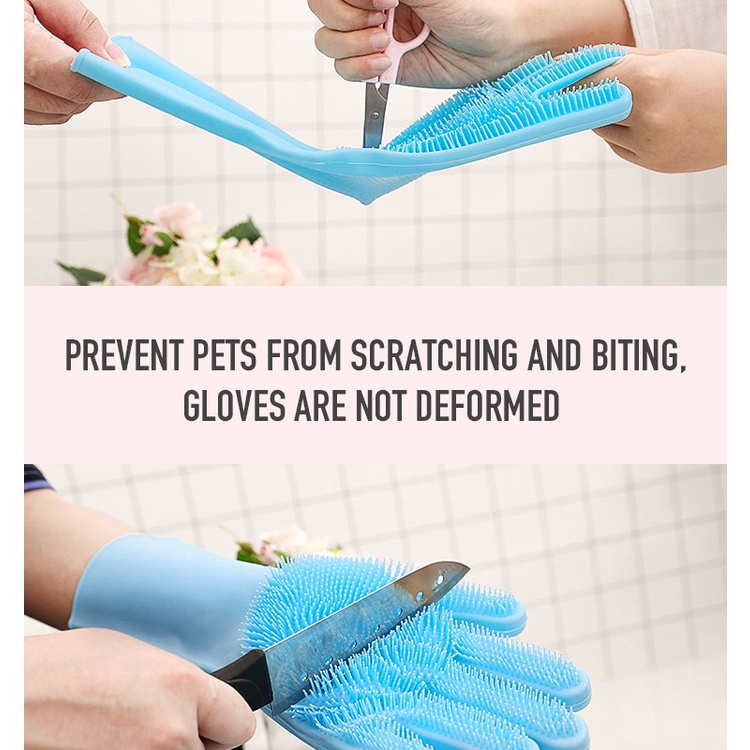 MASTI ถุงมือซิลิโคนอาบน้ำสัตว์เลี้ยง ป ้องกันรอยขีดข่วน LI0257