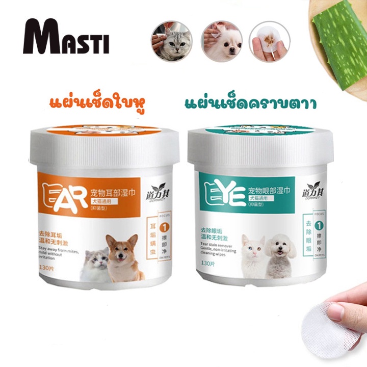 MASTI ผ้าเช็ดทำความสะอาดตา หู แบบอ่อนโยน สำหรับแมวและสุนัข ห่อละ 260ชิ้น 130 ชิ้น LI0075