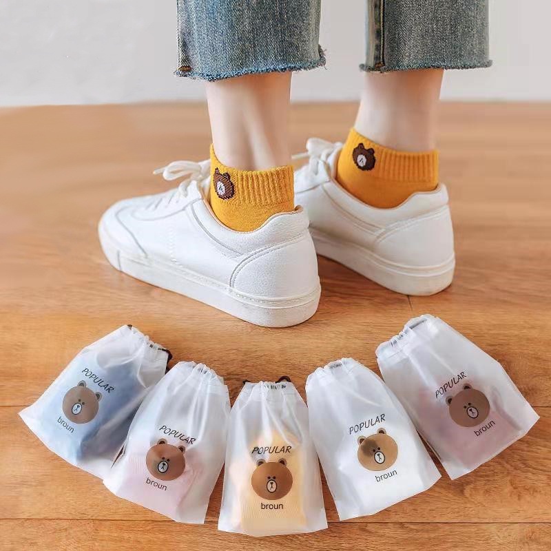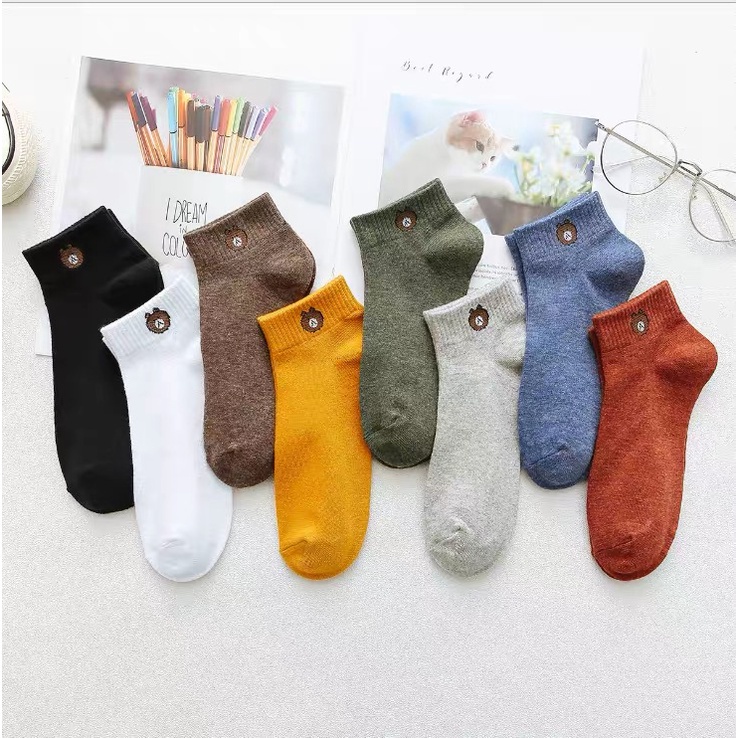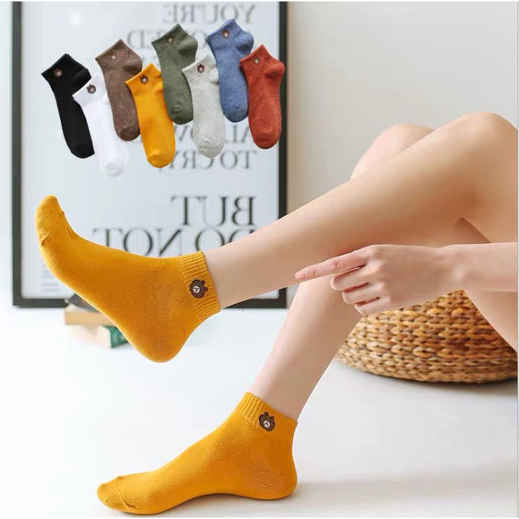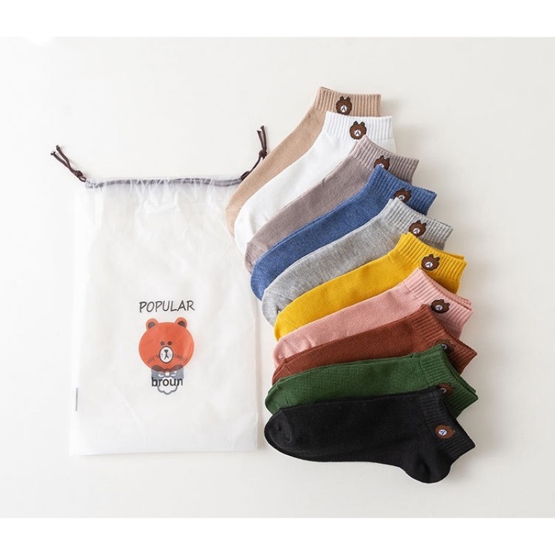ถุงเท้าข้อสั้นผู้หญิง ลายหมี แฟชั่นน่ารัก แถมถุงหมี แพ็ค 10 คู่ 10 สี