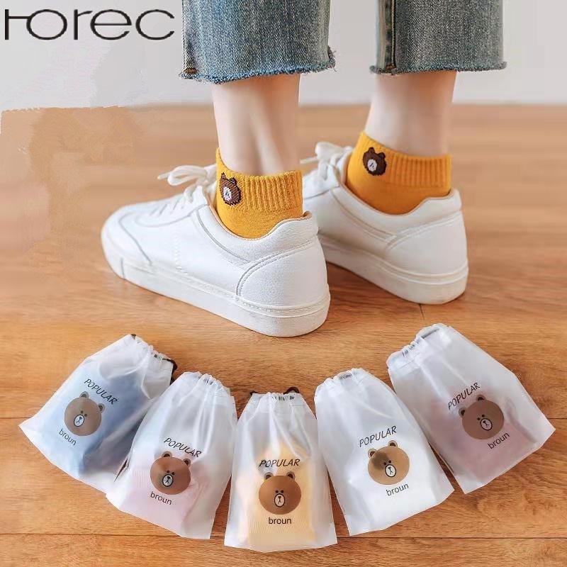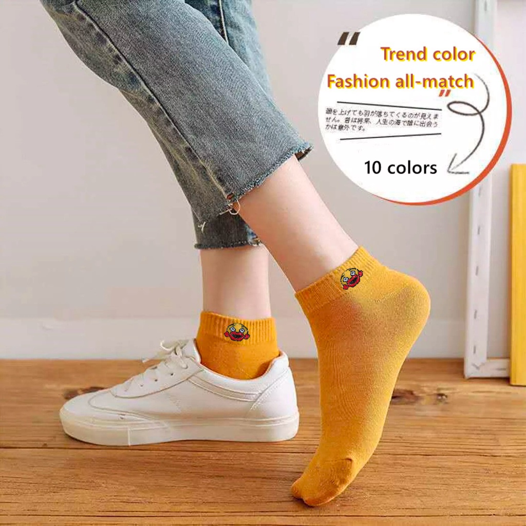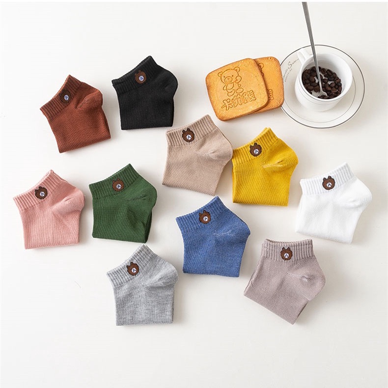 Kuike (แพ็ค 10 คู่ 10 สี + แถมถุงหมี) ถุงเท้าข้อสั้น ลายหมี ถุงเท้าแฟชั่นสำหรับผู้หญิง