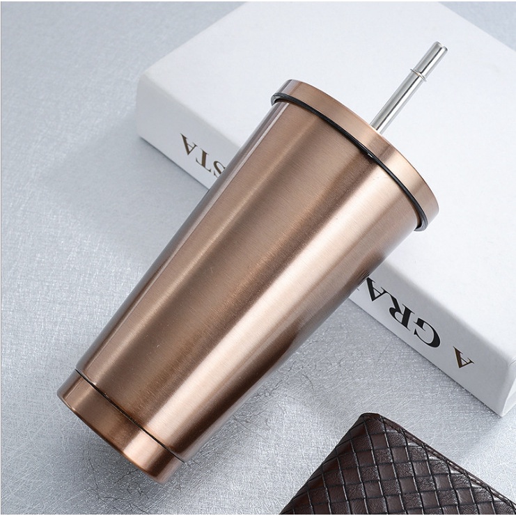 NexTool โปร แก้วเก็บความร้อน-เย็น สีพื้น สแตนเลส304 แก้วมัคหุ้มฉนวนขนาด 500 มล. พร้อมฟางและฝาปิดแบบ 2-in-1, แก้วกาแฟสเตนเลสสตีลแบบป้องกันการรั่วแบบสองชั้น - เก็บความเย็นหรือร้อน