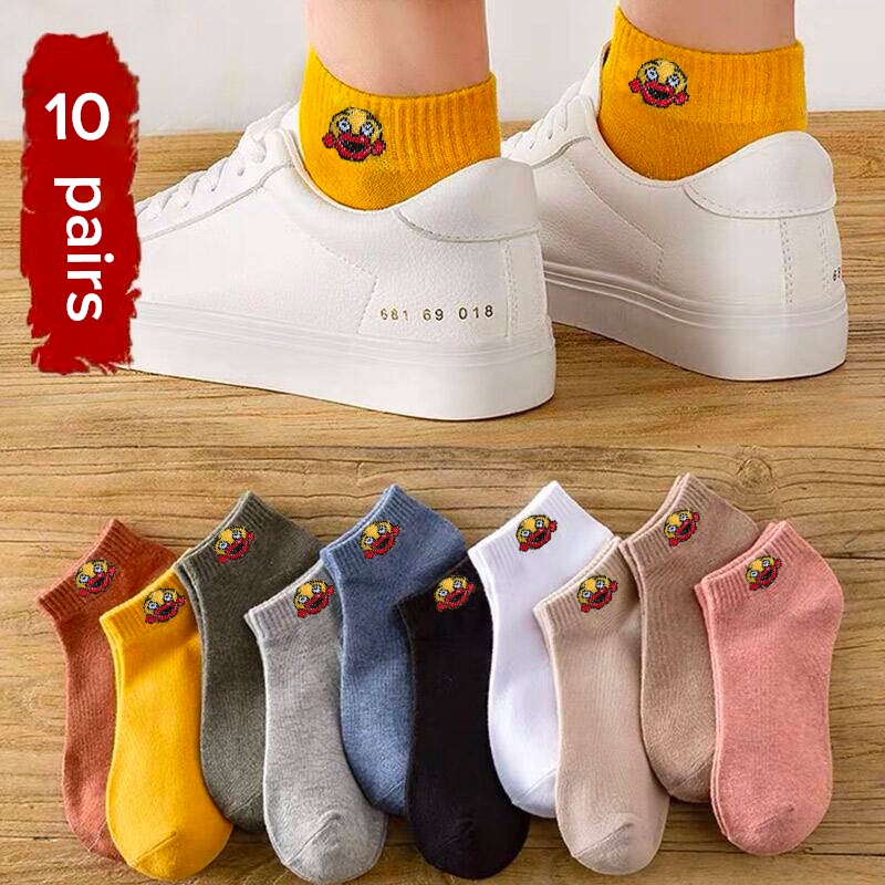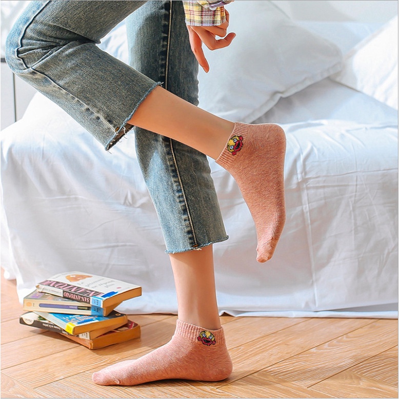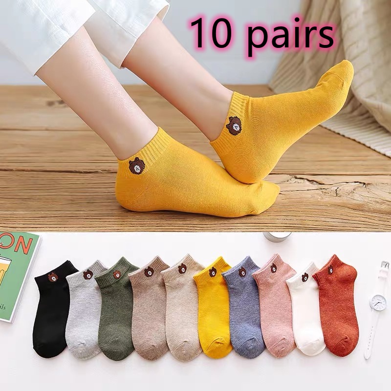 happylife ถุงเท้าข้อสั้น ลายการ์ตูนหมี พร้อมถุงใส่ น่ารัก 10 สี แพ็ก 10 คู่