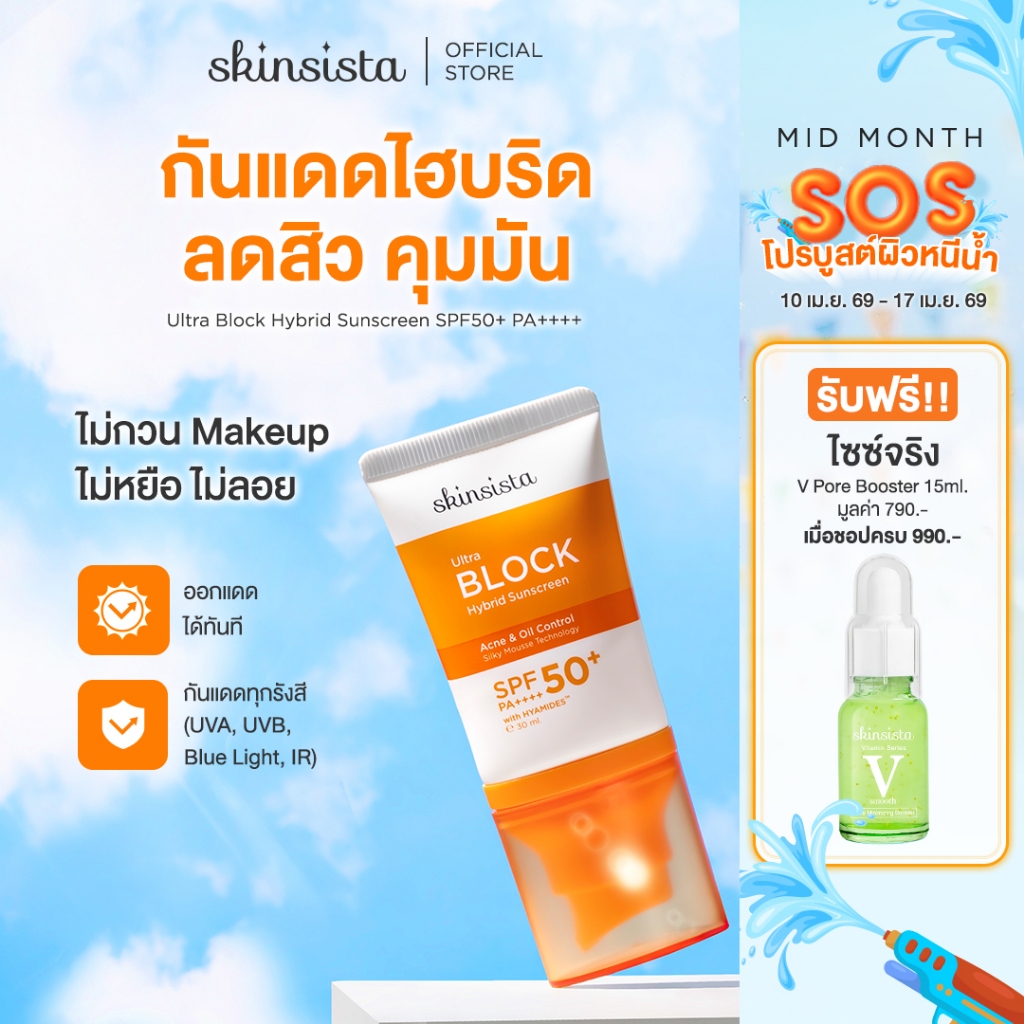Skinsista ครีมกันแดด คุมมัน กันสิว Ultra Block Hybrid สูตรไฮบริด บล็อกทุกรังสี บางเบา