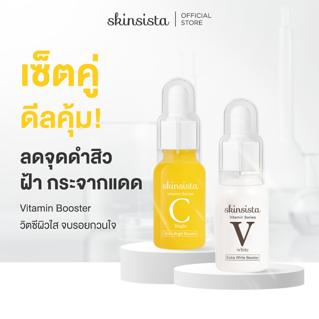 [เซตคู่] Skinsista Vit C +V white เซต บูสเตอร์เซรั่ม ผิวสว่าง กระจ่างใสและลดฝ้า กระ จุดด่างดำ (15+15ml)