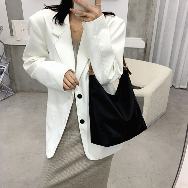 Mousoon กระเป๋าสะพายผ้าแคนวาส Tote ความจุขนาดใหญ่เรียบง่ายสําหรับผู้หญิง