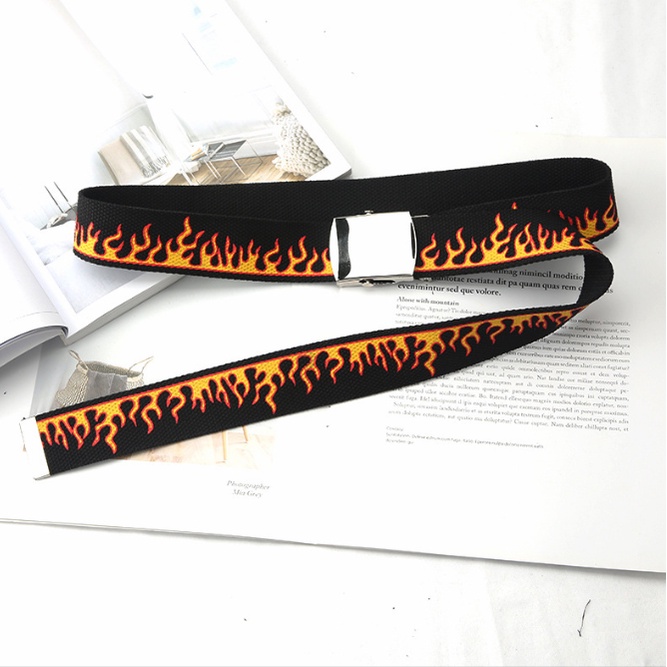PannoFluxus เข็มขัดลายไฟ เข็มขัดผ้าพิมพ์ลายเปลวไฟ เข้ากับทุกชุด ทันสมัย