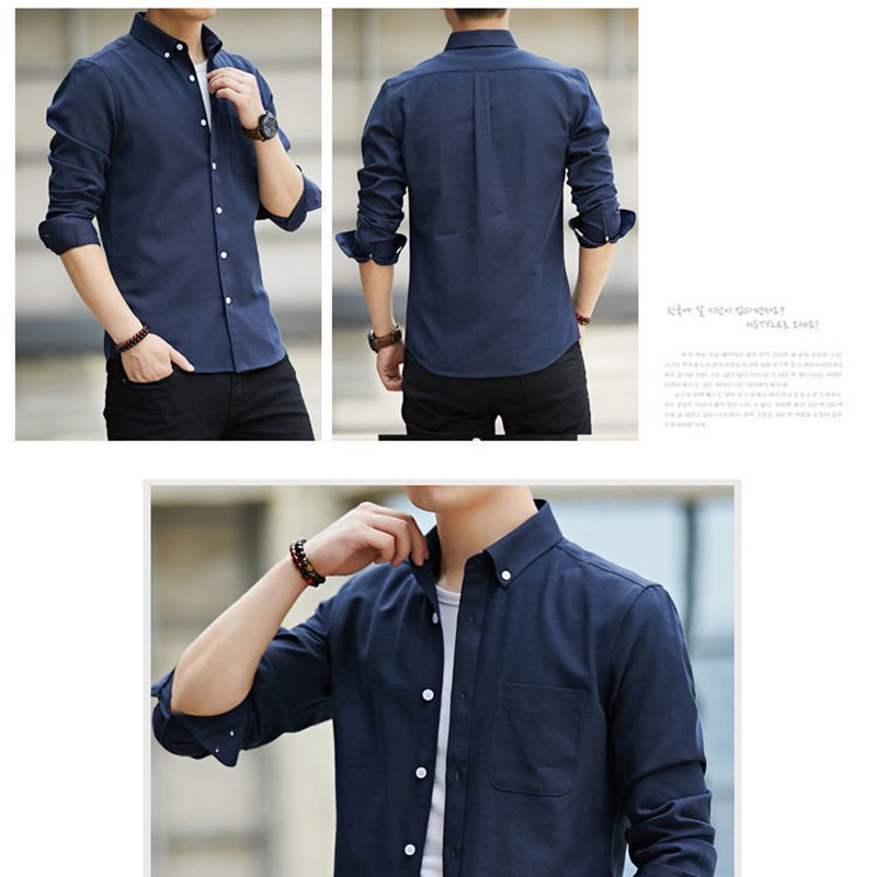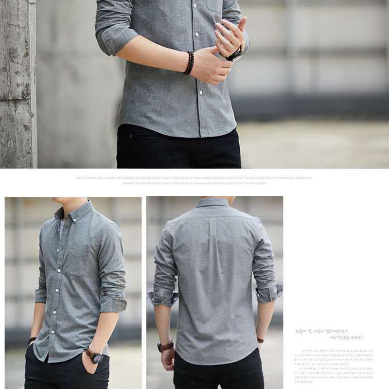 PannoFluxus เสื้อเชิ้ตแขนยาวลำลองทรงสลิม เสื้อเชิ้ตทำงานสีทึบผู้ชายแฟชั่นสไตล์เกาหลี