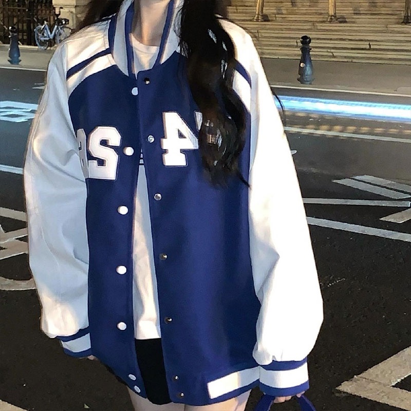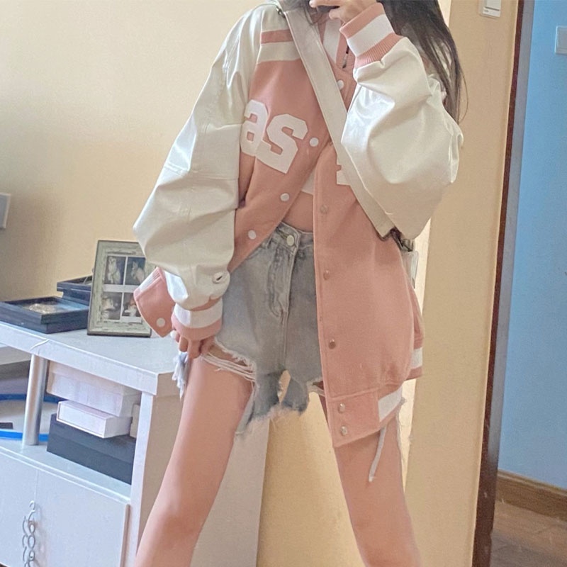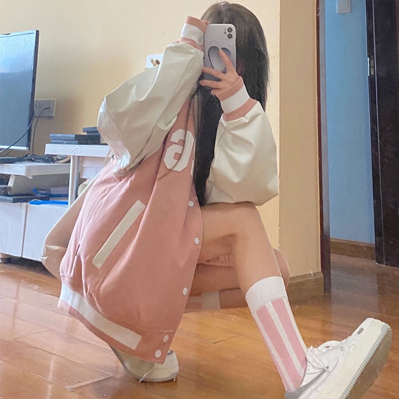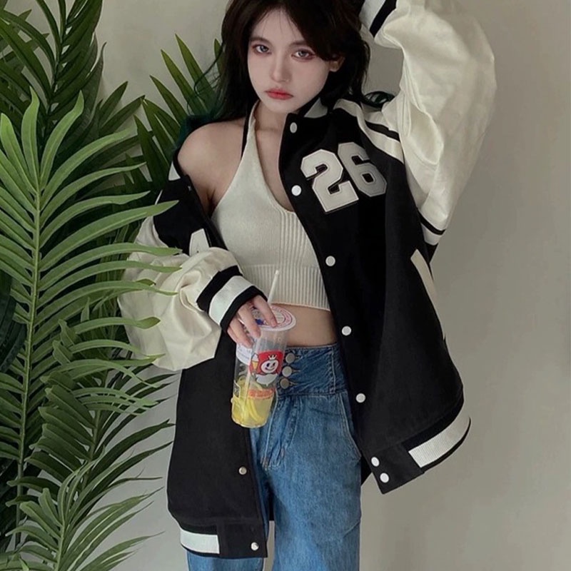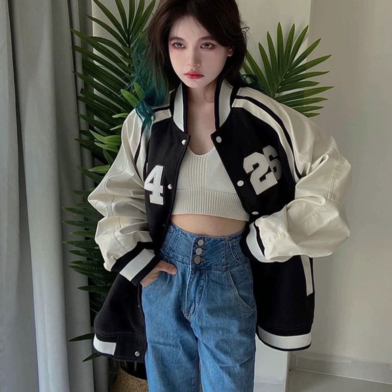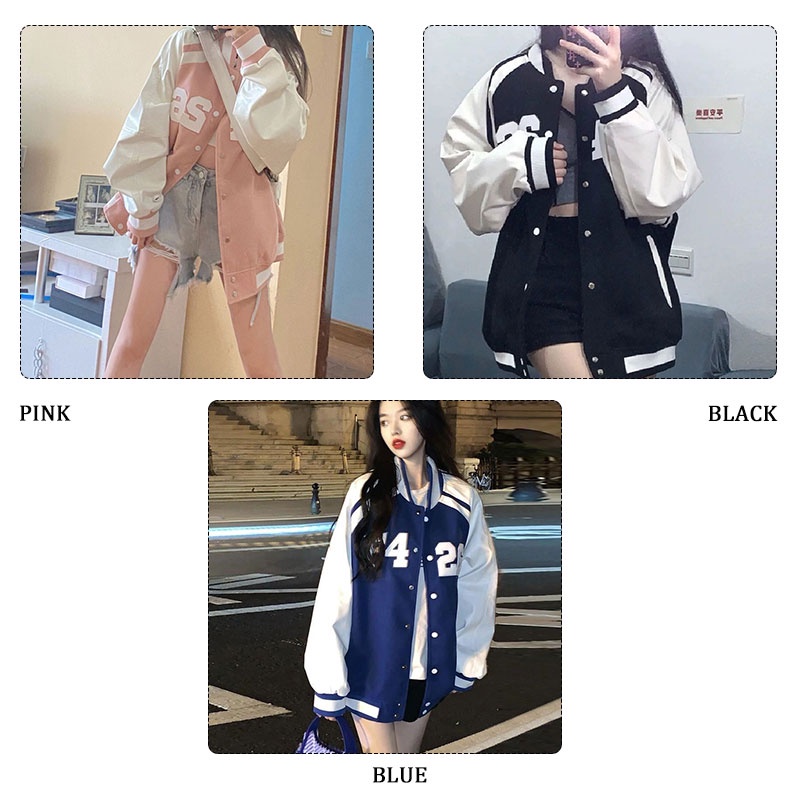 Ruo Bei Xuan เสื้อแจ็กเก็ตเบสบอล แขนยาว สไตล์เกาหลี เรโทร แฟชั่นสําหรับผู้หญิง