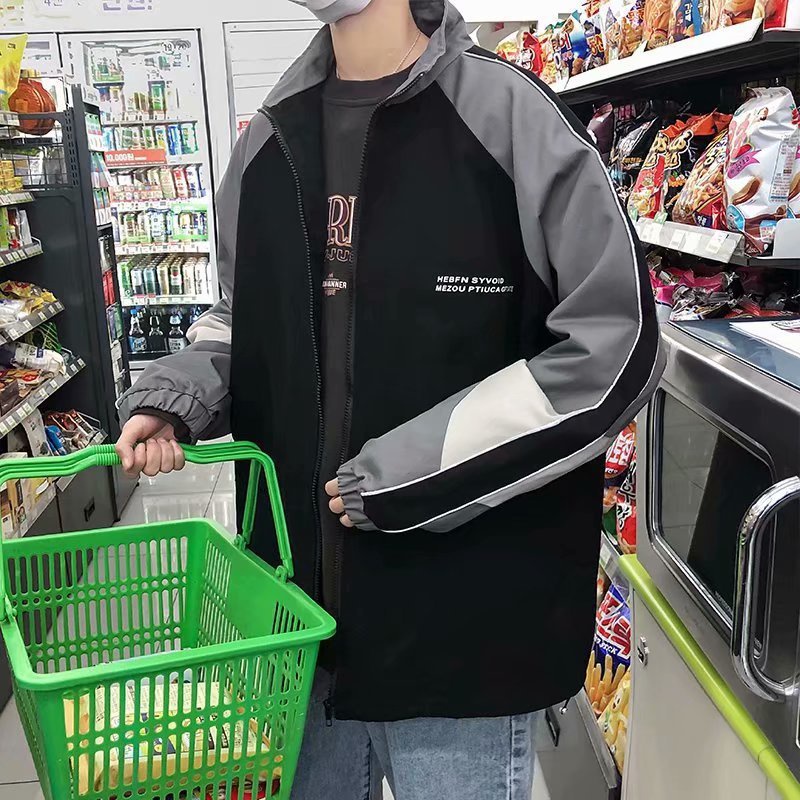Suikone COD เสื้อแจ๊คเก็ตผู้ชาย ชุดกีฬาคู่นักเรียนเย็บสีเสื้อคู่หลวมแฟชั่นคอปกชุดเบสบอลเกาหลีรุ่น ins top เสื้อผ้าผช