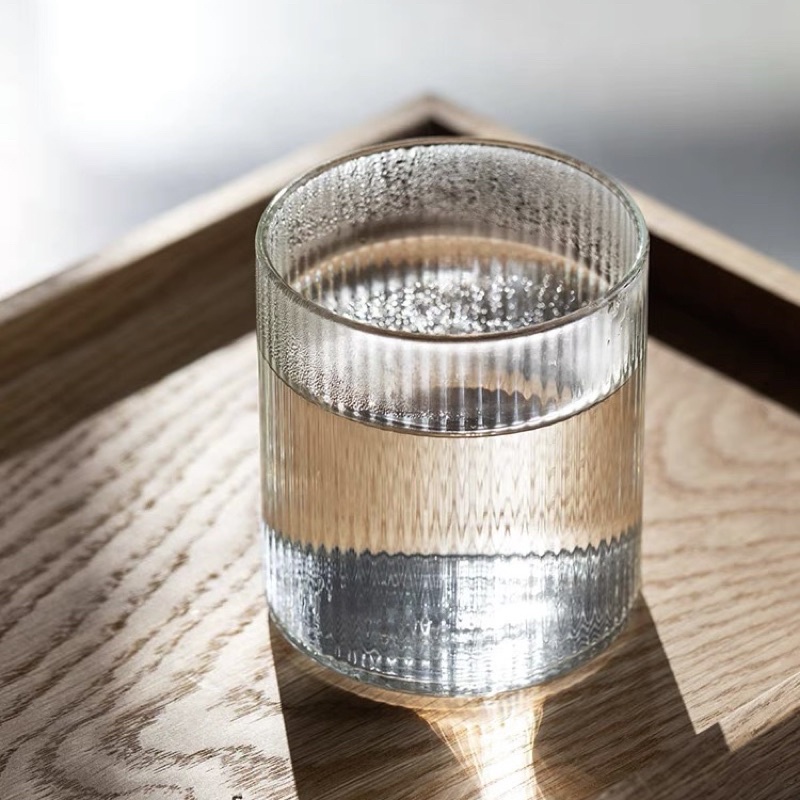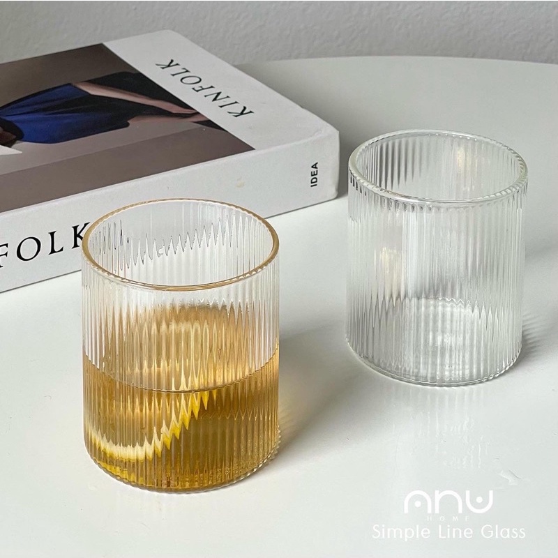 Simple Line glass แก้วดื่มนำ้ลายริ้วถี่ เนื้อหนามีนำ้หนัก ทนความร้อน