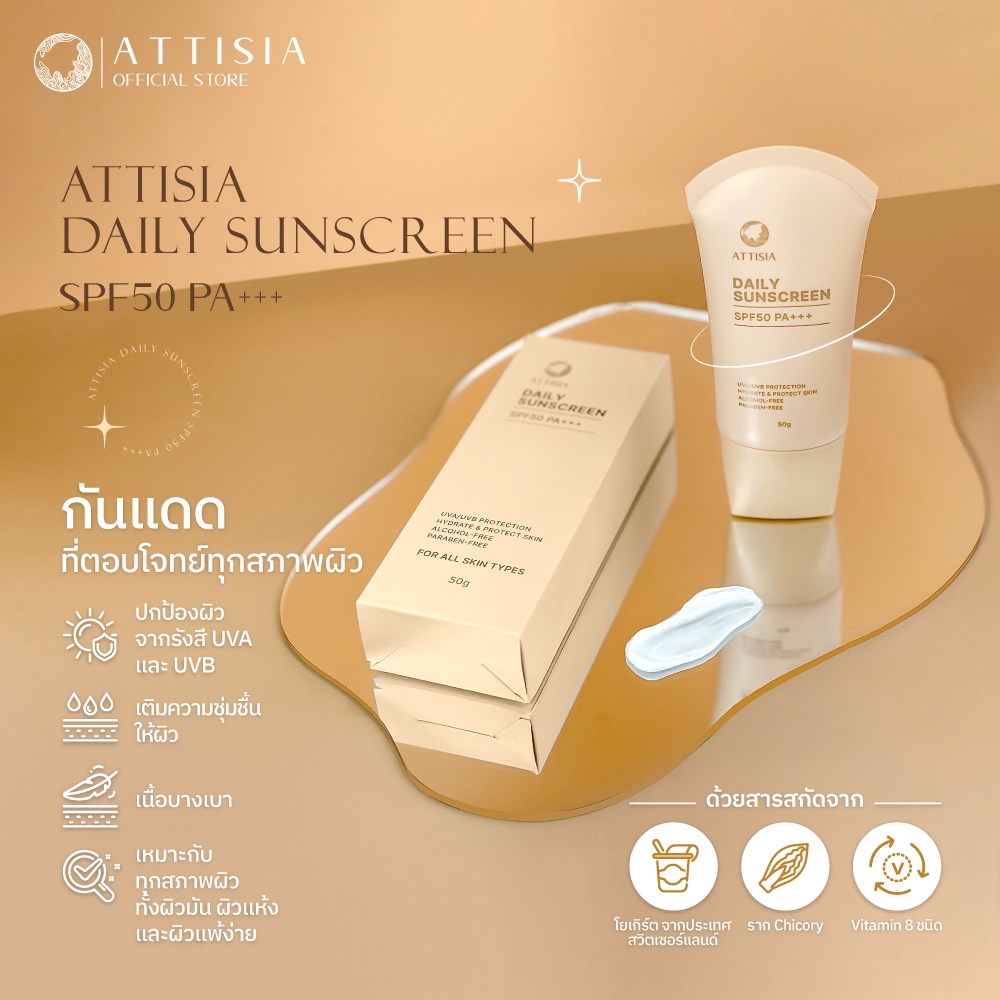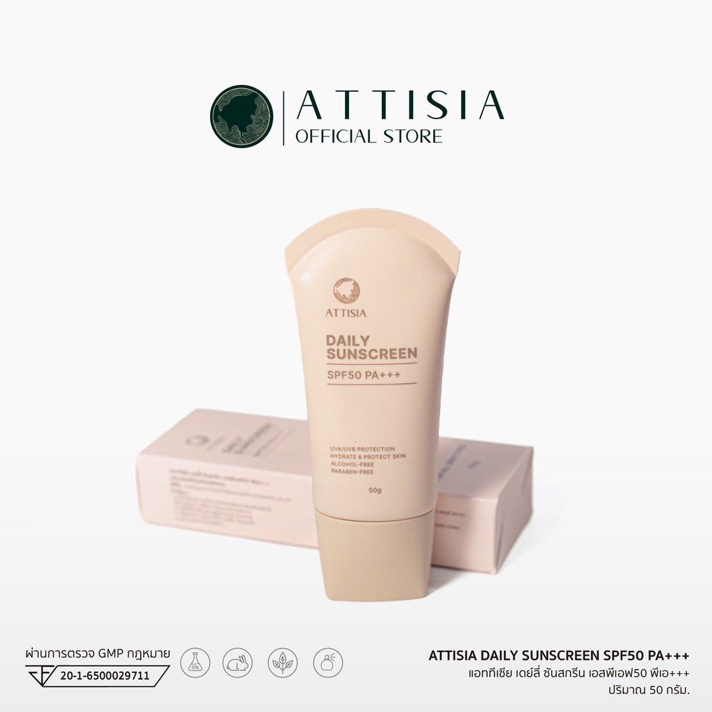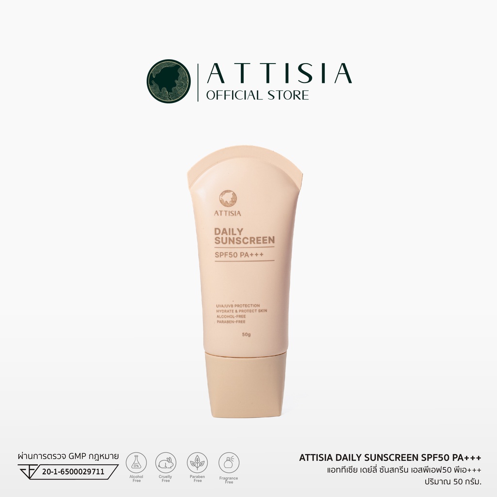 ATTISIA DAILY SUNSCREEN SPF50 PA+++ แอททีเซีย เดย์ลี่ ซันสกรีน เอสพีเอฟ 50 พีเอ ++ ปริมาณ 50 กรัม