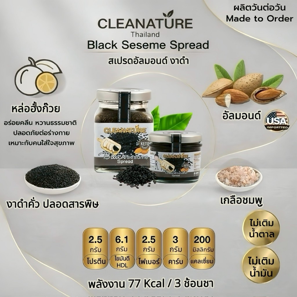 เนยถั่ว อัลมอนด์ ชุด Premium Keto ขนาด100กรัม 3 รสชาติ; Original, Premium DarkChoc, Black Sesame Spread |ผลิตวันต่อวัน