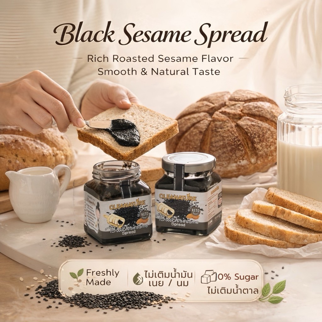 เนยอัลมอนด์งาดำ Black Sesame Almond Spread 180 กรัม |ไม่เติมน้ำตาล ไม่เติมน้ำมัน |ผลิตวันต่อวัน