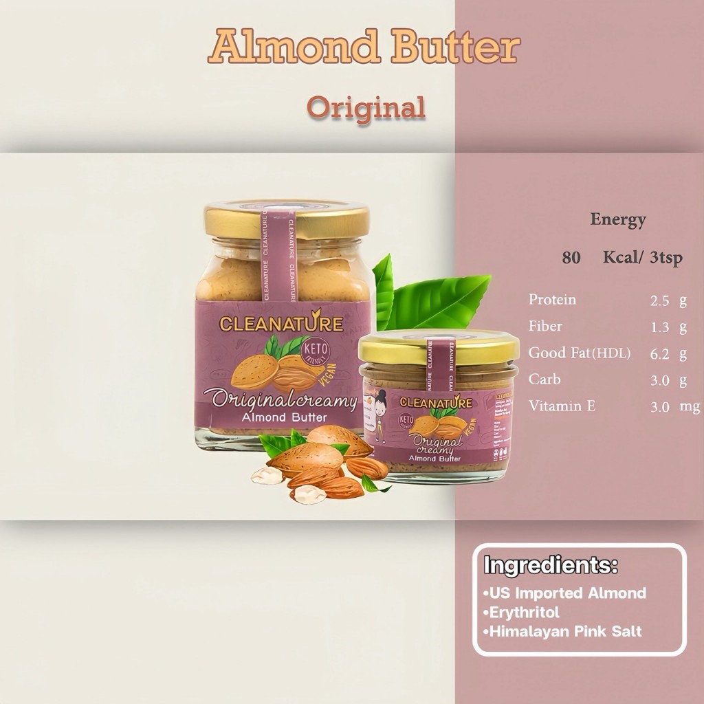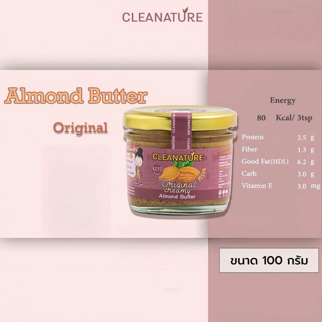 เนยถั่วอัลมอนด์ Original Creamy Almond Butter 100 กรัม |ไม่เติมน้ำตาล ไม่เติมน้ำมัน |ผลิตวันต่อวัน