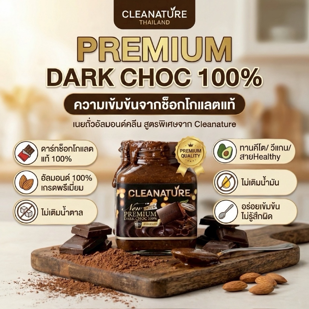 เนยถั่วอัลมอนด์ คลีน ดาร์กช็อกโกแลต DarkChocolate Almond Butter100กรัม |ไม่เติมน้ำตาล |ผลิตวันต่อวัน