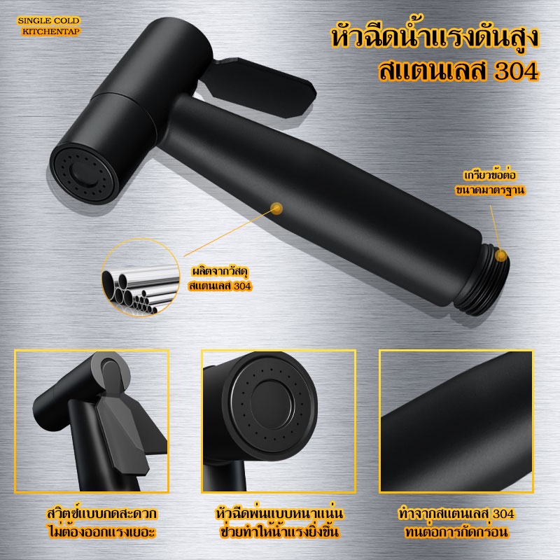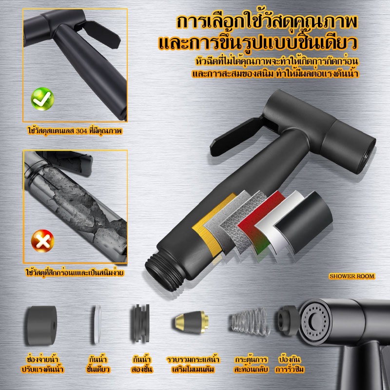 หัวฉีดชำระ สแตนเลสแท้ SUS304 เกรดพรีเมี่ยม ชุดสายฉีดชำระ รับประกันคุณภาพ ที่ฉีดก้น ที่ฉีดชำระก้น สายหัวฉีดชำระ ที่ฉีดตูด