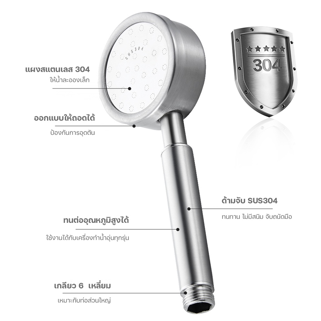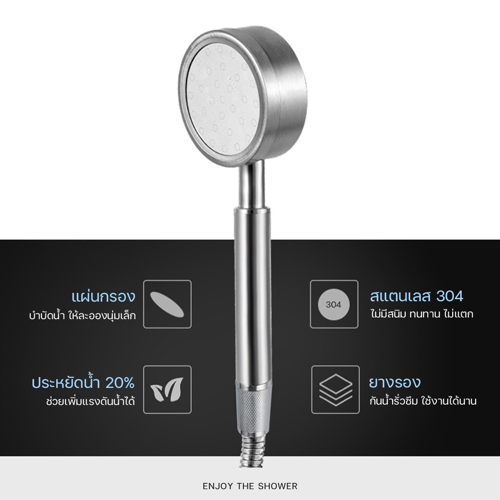 ฝักบัวแ รงดันสูง ฝักบัวอาบน้ำ สายฝักบัว สแตนเลสเกรด 304 ไม่มีสนิม น้ำแรงและนุ่ม ประหยัดน้ำ #B-018