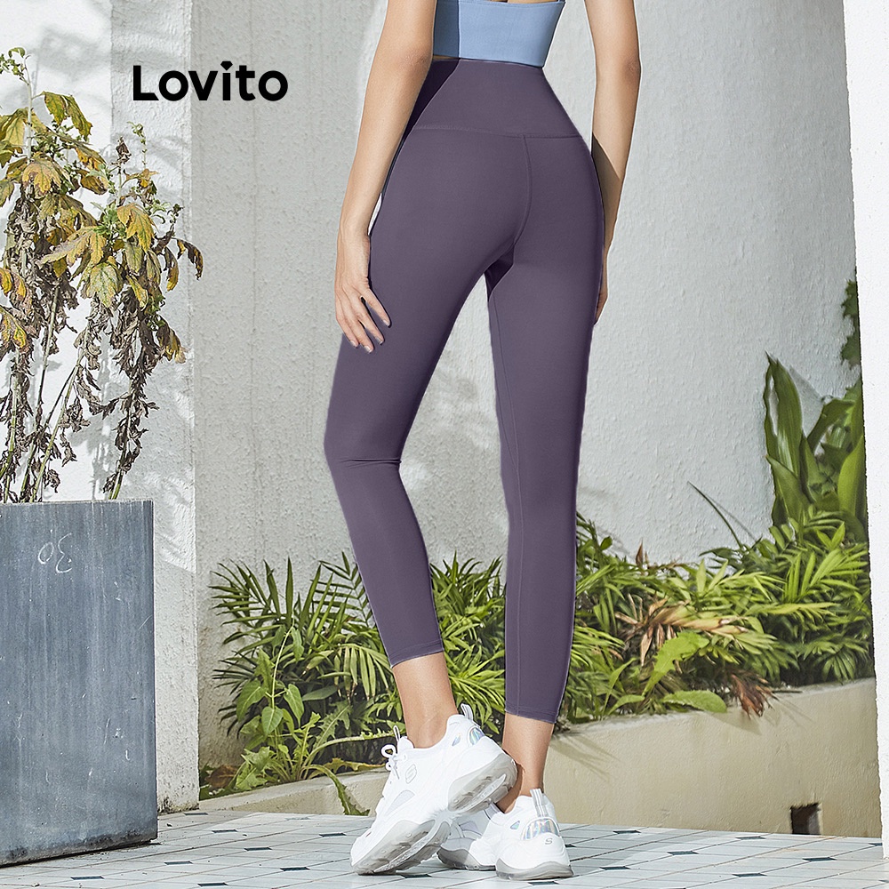 Lovito กางเกงรัดหน้าท้องเอวสูงสำหรับเล่นกี ฬาโยคะ Pickleball ฤดูร้อน/ฤดูใบไม้ผลิสำหรับผู้หญิง L02044