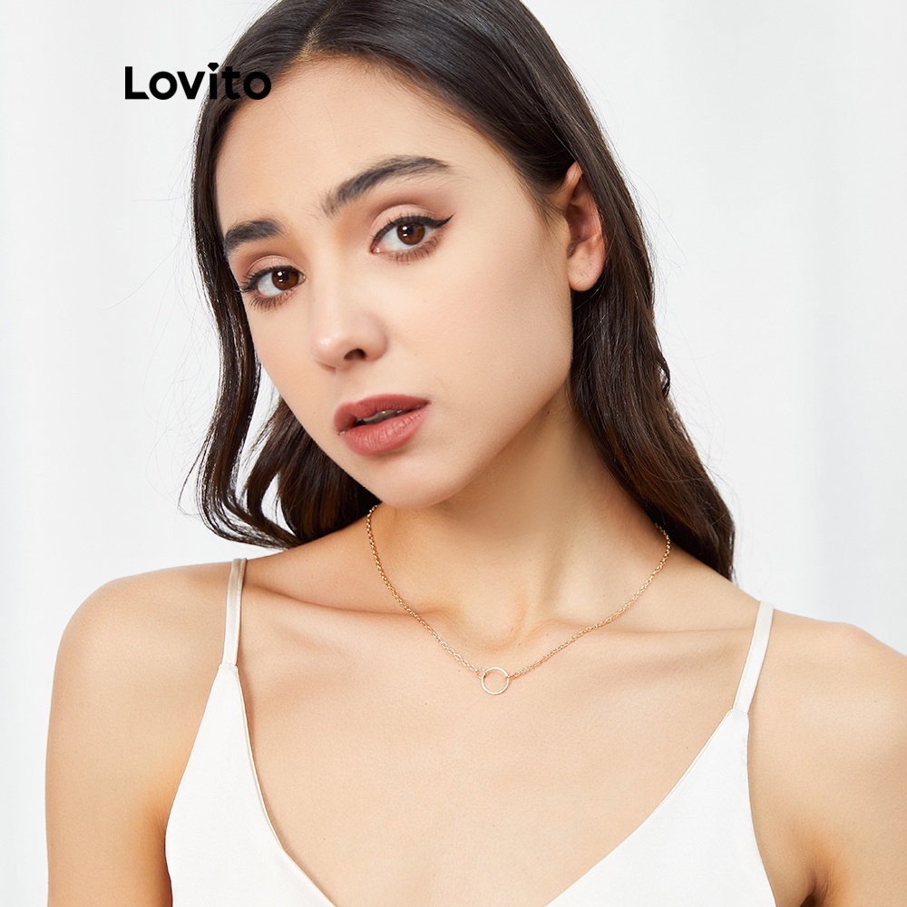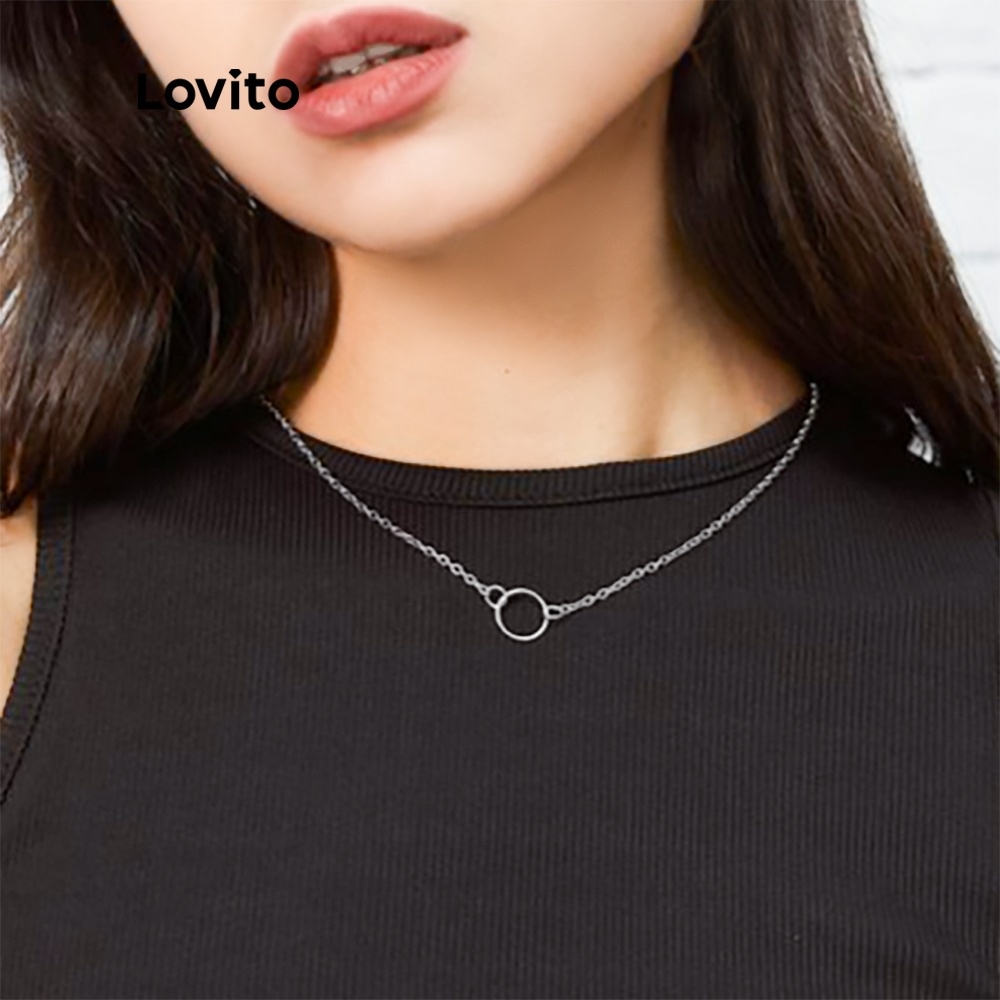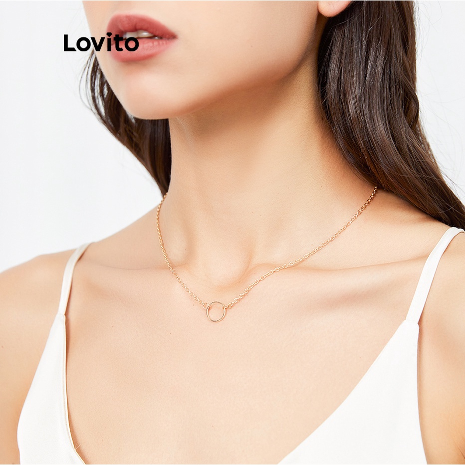 Lovito สร้อยคอโลหะแหวนกระดูกไหปลาร้าโซ่ของขวัญของผู้หญิงสร้อยคอโลหะผสมสําหรับผู้หญิง A07010 (ทอง/เงิน)