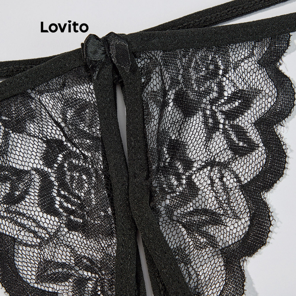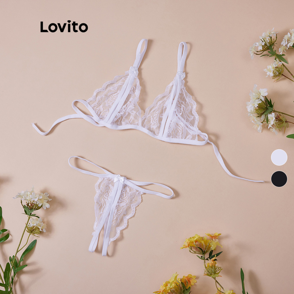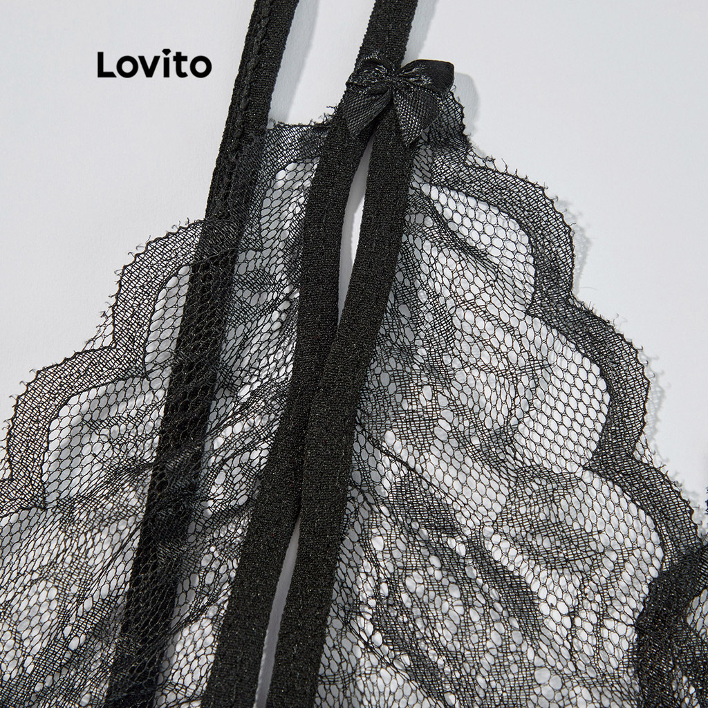 Lovito เซ็กซี่เซ็กซี่ชุดชั้นในลูกไม้ขึ้นชุดชั้นในชุดสําหรับผู้หญิง L12084 (ดํา/ขาว)