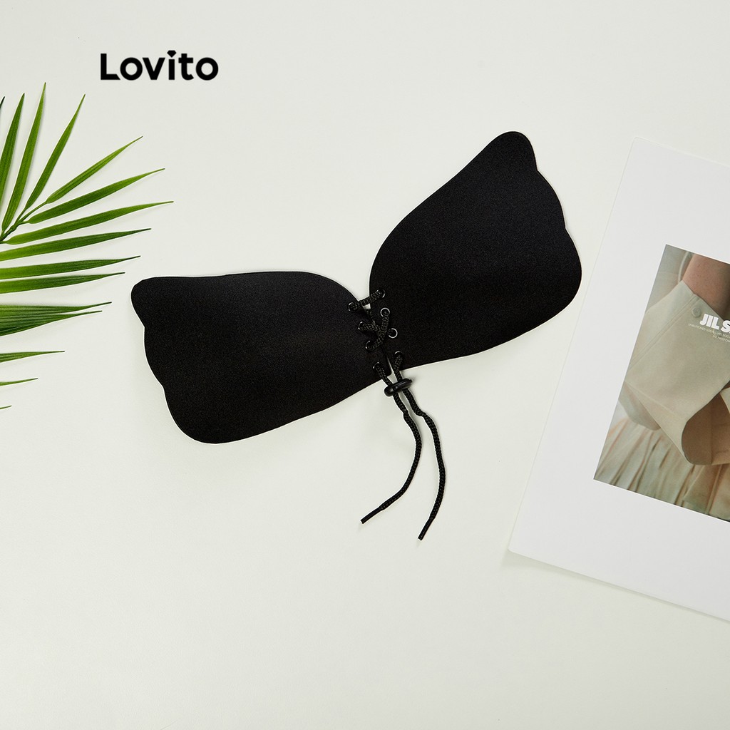 Lovito เสื้อชั้นในไร้ตะเข็บ เชือกผูก ดีไซน์มีกาวในตัว ซิลิโคน เป็นมิตรต่อผิว ดันทรงไร้สายสำหรับผู้หญิง L13X108