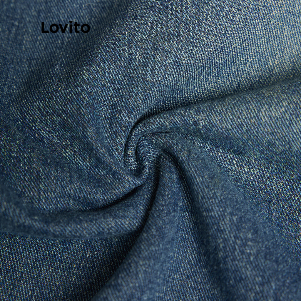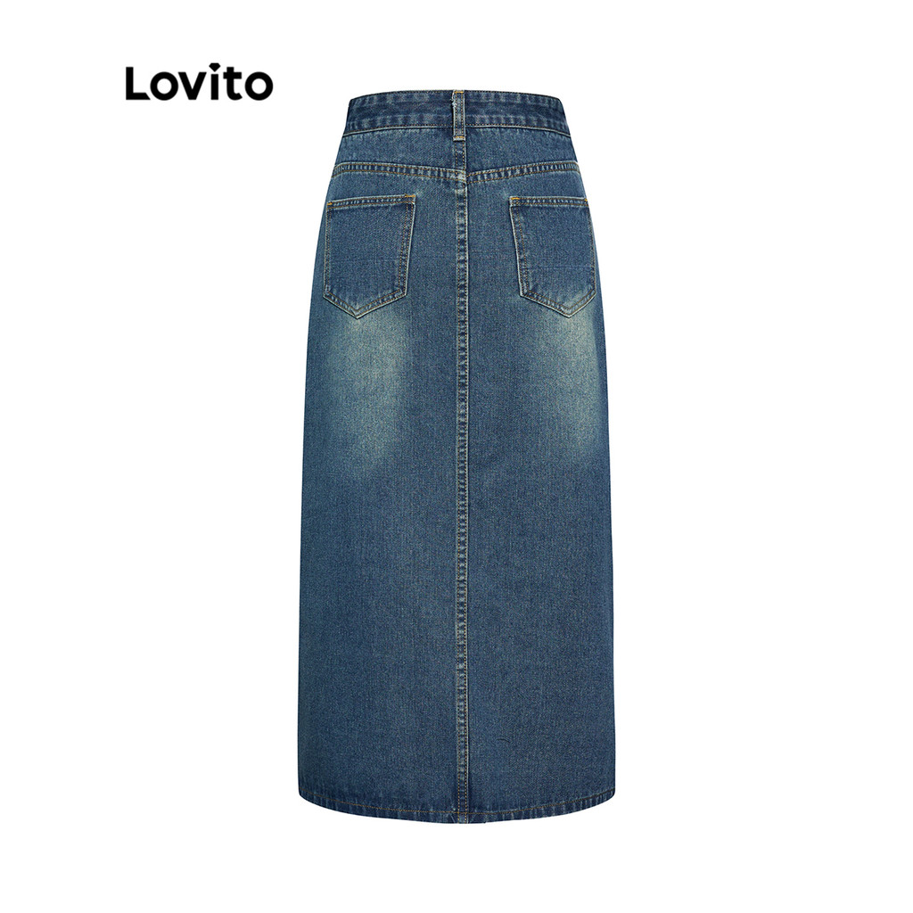 Lovito กระโปรงยีนส์ยาวปานกลางทรงหลวมสำหรับผู้หญิง ทรงเข้ารูป ซักธรรมดา ผ่าข้าง กระโปรงฤดูร้อน/ฤดูใบไม้ผลิ L39AD079