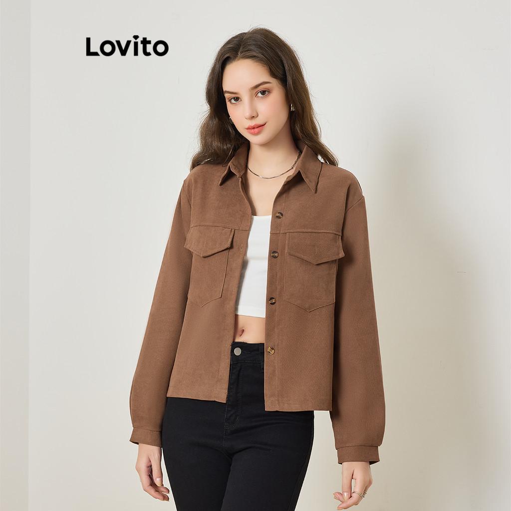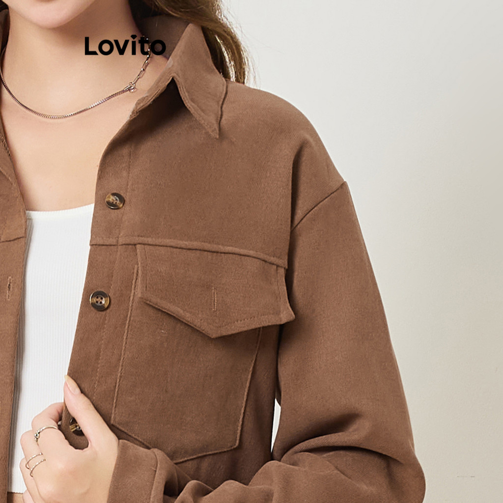 Lovito เสื้อลําลองเสื้อด้านหน้าปุ่มกระเป๋าธรรมดาสําหรับผู้หญิง LNA29011 (หลากสี)