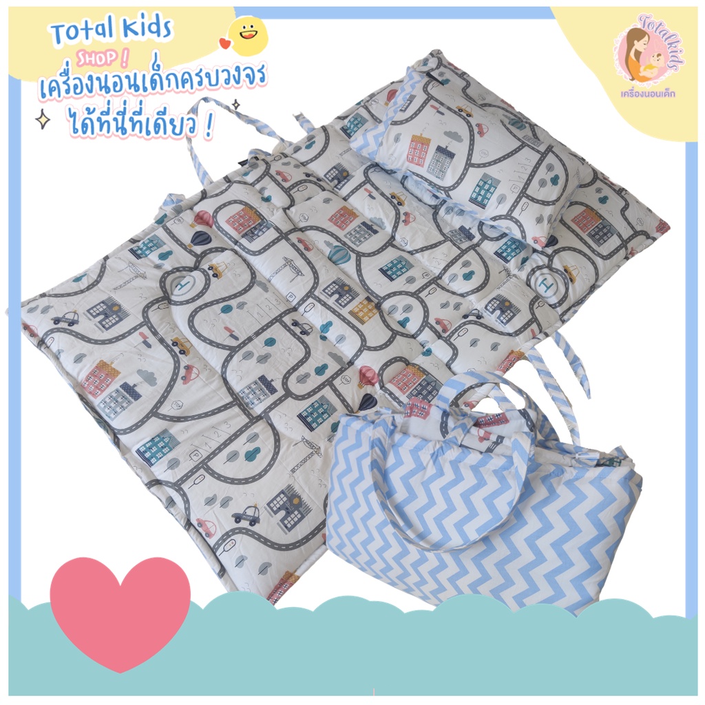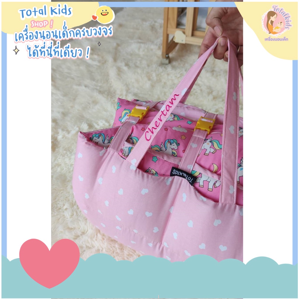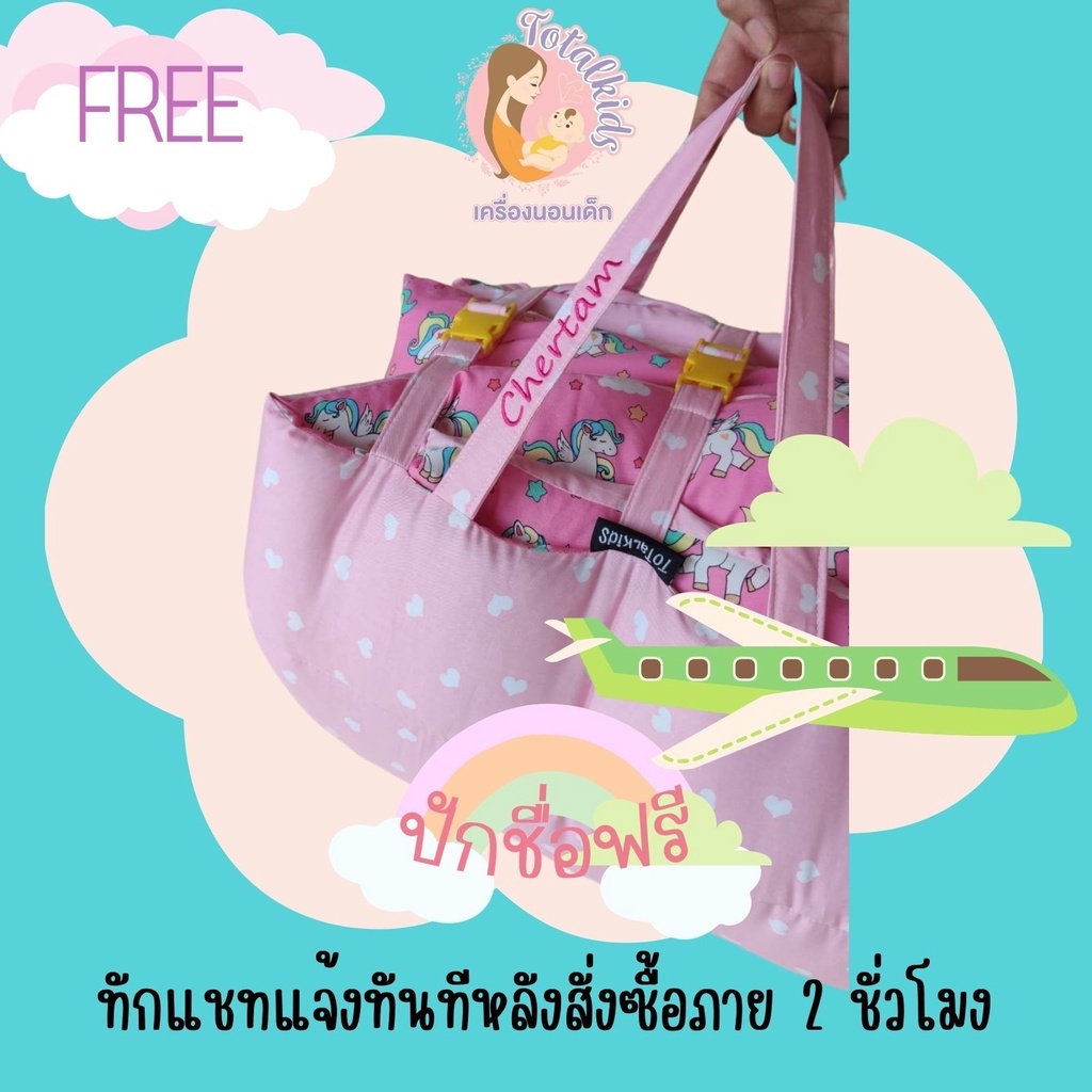 ที่นอนอนุบาลแบบซักทั้งชิ้น รุ่นโอลีฟ (ที่นอนพร้อมหมอนแยก ปักชื่อที่สายหิ้ว)